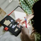 The pockets on the left side have pieces of stationery and other colorful items peeking out, making for another charming feature.
