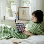 The world created by Kitagishi in acrylic gouache draws you in, quietly making you imagine the stories or settings behind each piece for a special kind of wonder. Both nostalgic and exciting, her illustrations perfectly capture the charm of a picture book. The theme for this techo cover is a “White Cat’s Daily Life,” and it is made out of a polyester material.
