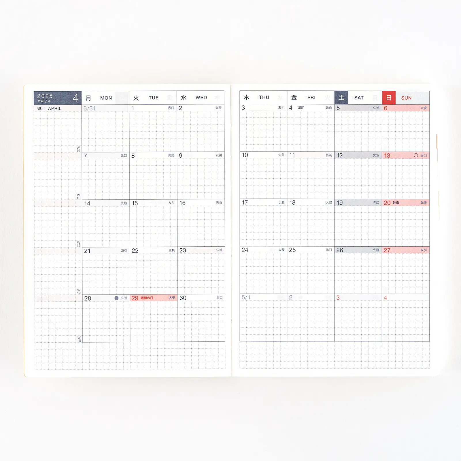 The Hobonichi Techo Original Book is an A6-sized techo with one page per day. This April-start version starts in April 2025 and covers through March 2026.