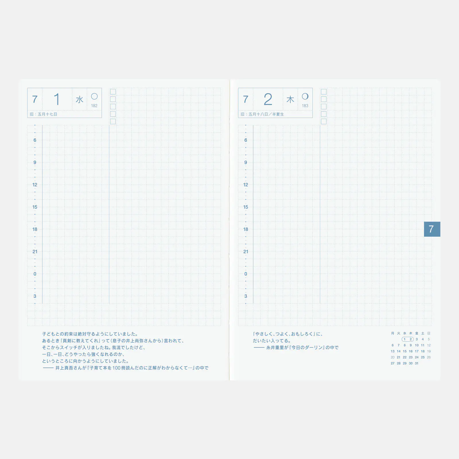 The Hobonichi Techo includes quotes specially chosen from the Hobonichi website. Each daily page has a quote in Japanese.