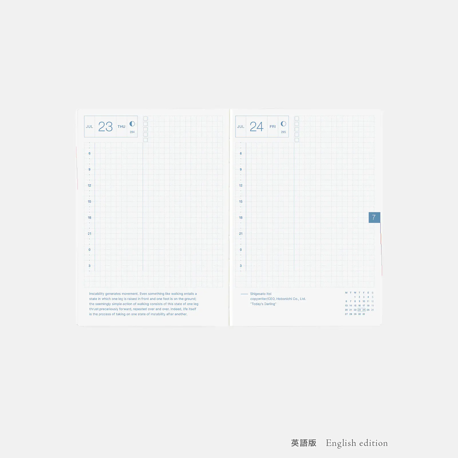 | Bonus Pages | Time Table / Graph Paper / Favorites / My 100 / Memories 2026 / 12 Switches to Help You Focus / For a Comfortable Night’s Sleep / Solar Terms / Emergency Preparedness / Conversion Chart / Getting the most of Hobonichi / Gifts / Age Table / Addresses / Personal Notes |