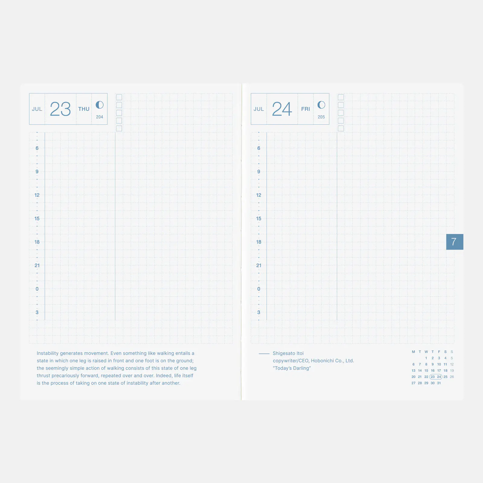 The daily pages include a quote per two-page spread specially chosen from the Hobonichi website.