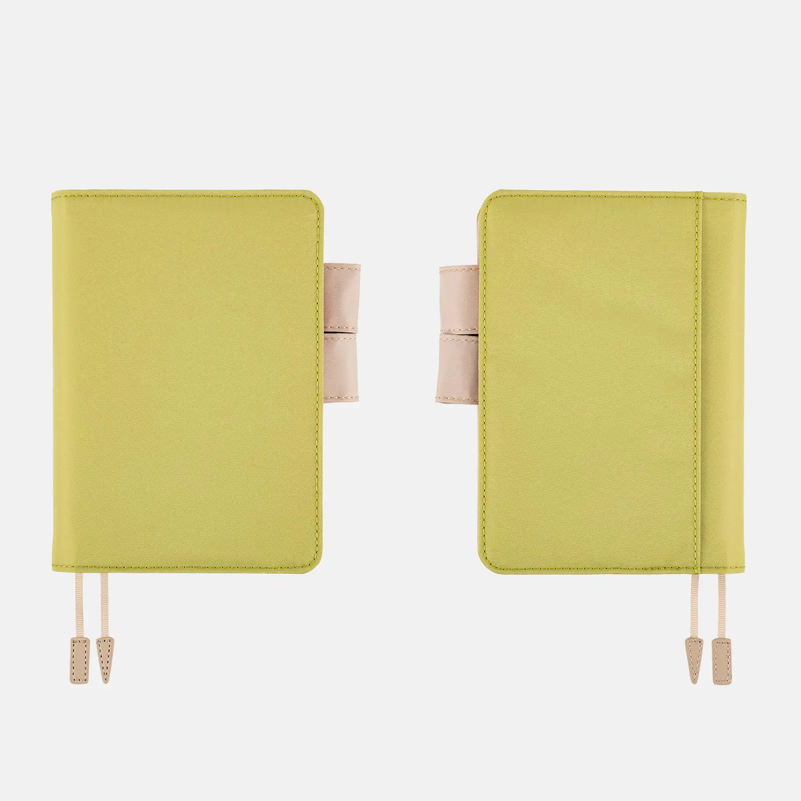 The cover contains two bookmarks, one with a rectangle charm and one with a triangle charm, so you can keep your place in two parts of the book, such as the monthly calendar and the daily page.