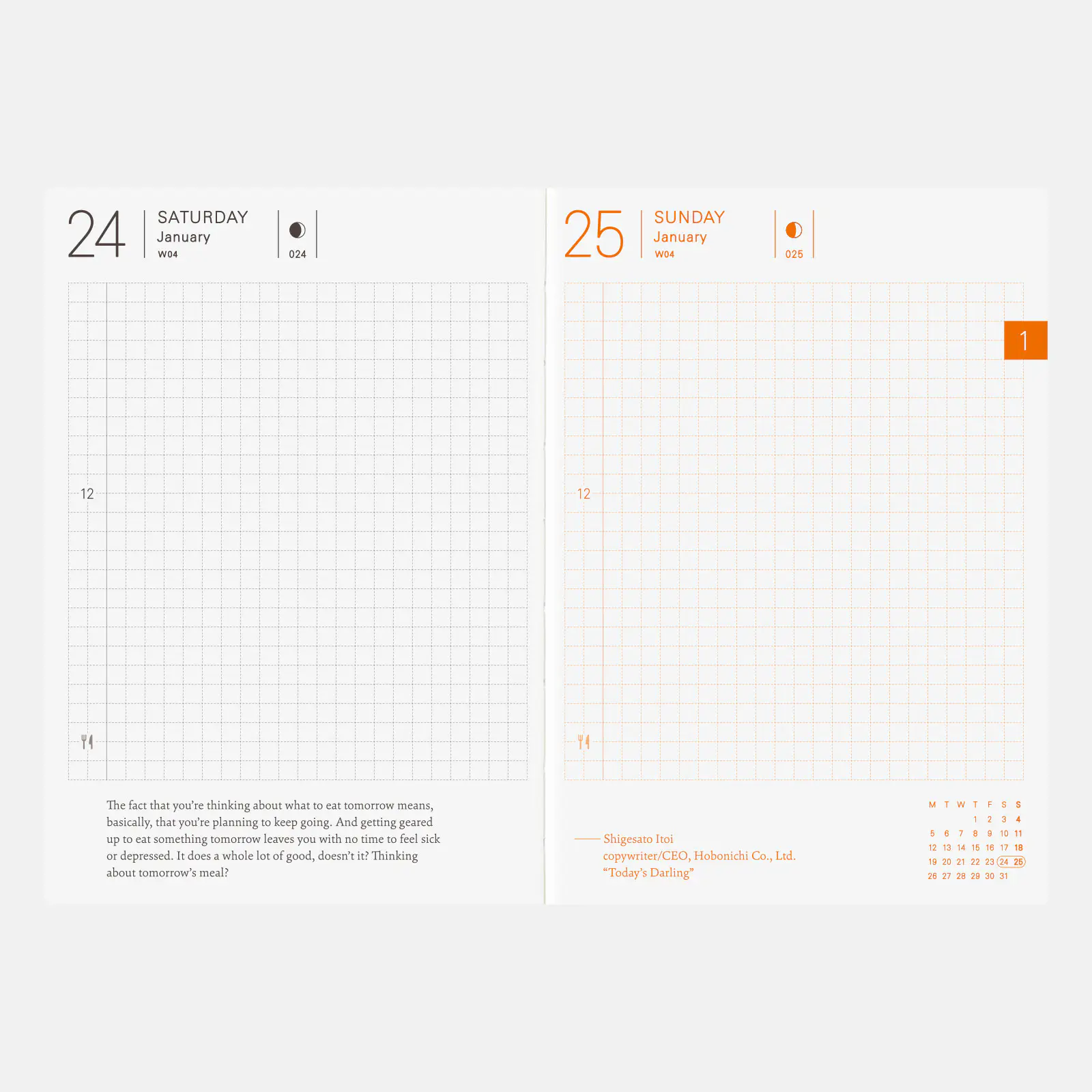 | Paper Type / Binding | Thin, light Tomoe River paper that is smooth to write on and designed for planners / Stitch-binding |