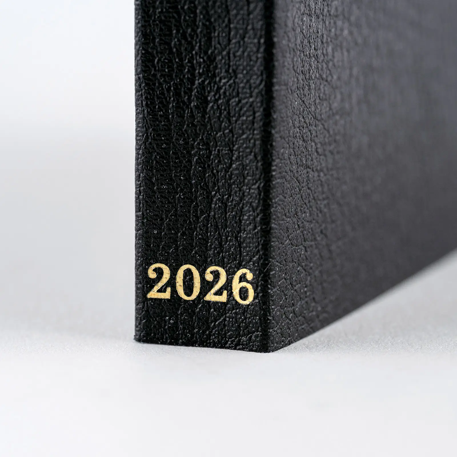 The book spine is foil-pressed in gold with the year 2026 and the “HOBO” logo for easy reference when placed in your bookshelf alongside other books.
