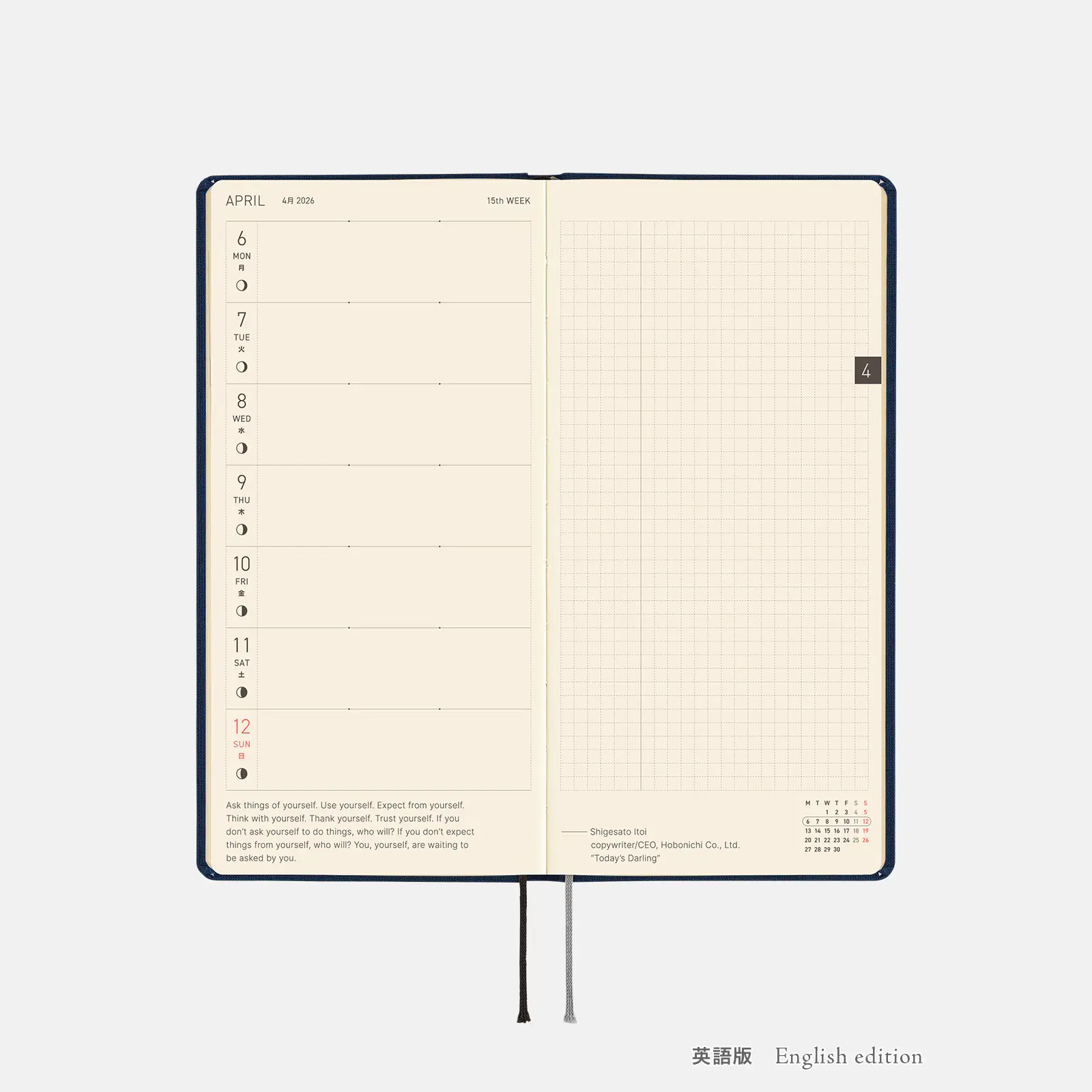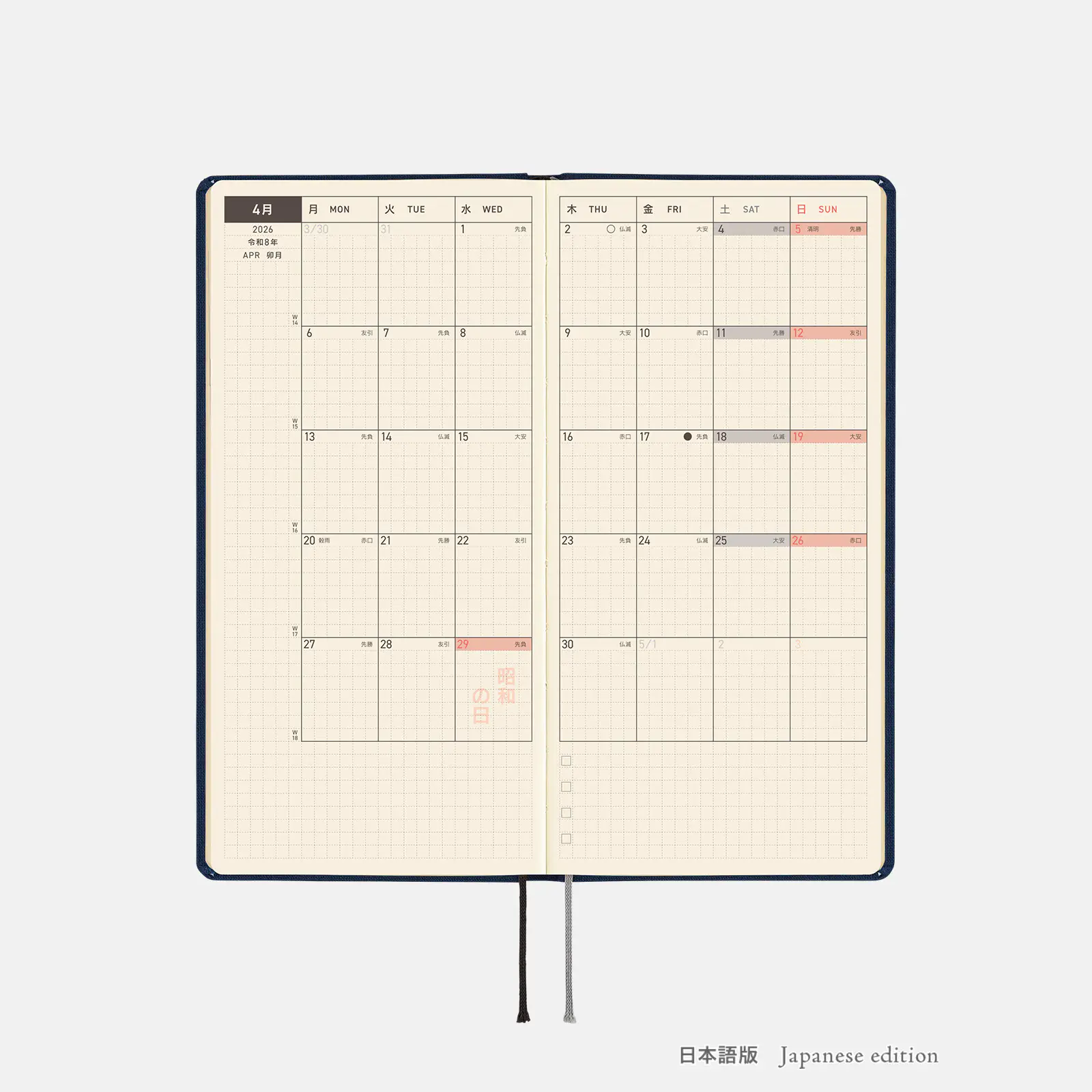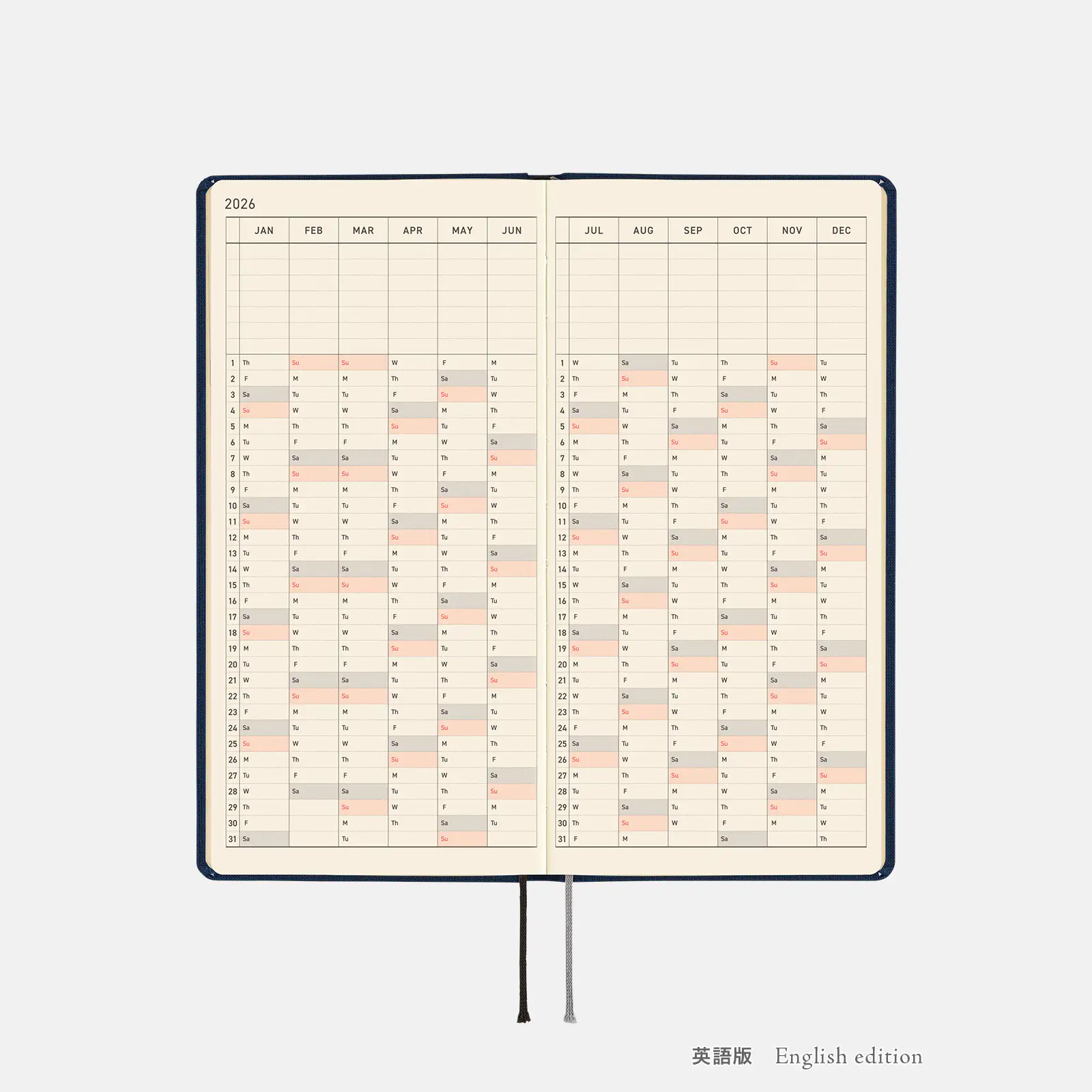 | Bonus Pages | 365 Days Check-Off Sheet / Using Things around You to Measure Size / My 100 / Memories 2026 / 12 Switches to Help You Focus / Solar Terms / Emergency Preparedness / Age Table / Conversion Chart / Getting the most of Hobonichi / Contact List / Personal Notes |