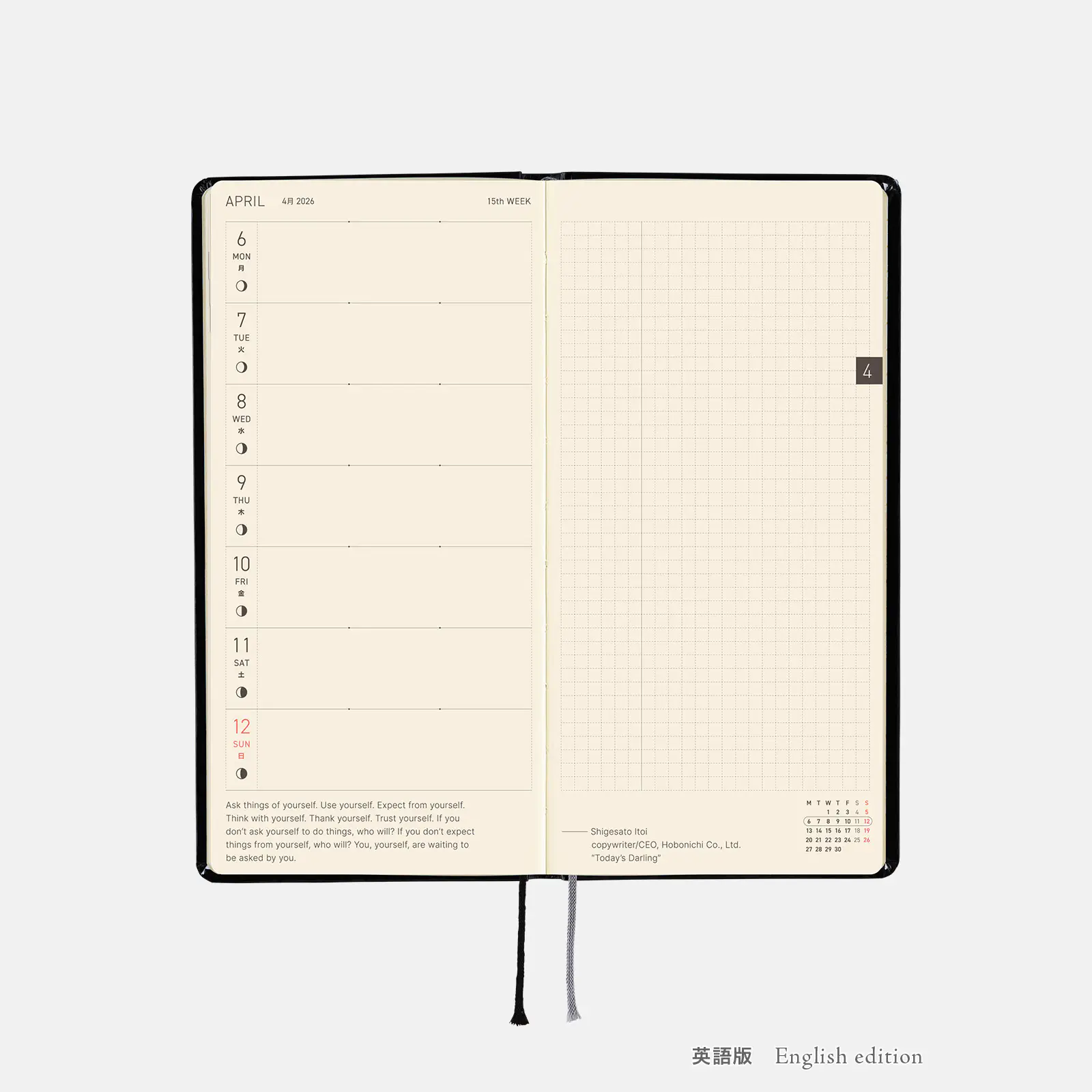 Bonus Pages365 Days Check-Off Sheet / Using Things around You to Measure Size / My 100 / Memories 2026 / 12 Switches to Help You Focus / Solar Terms / Emergency Preparedness / Age Table / Conversion Chart / Getting the most of Hobonichi / Contact List / Personal Notes