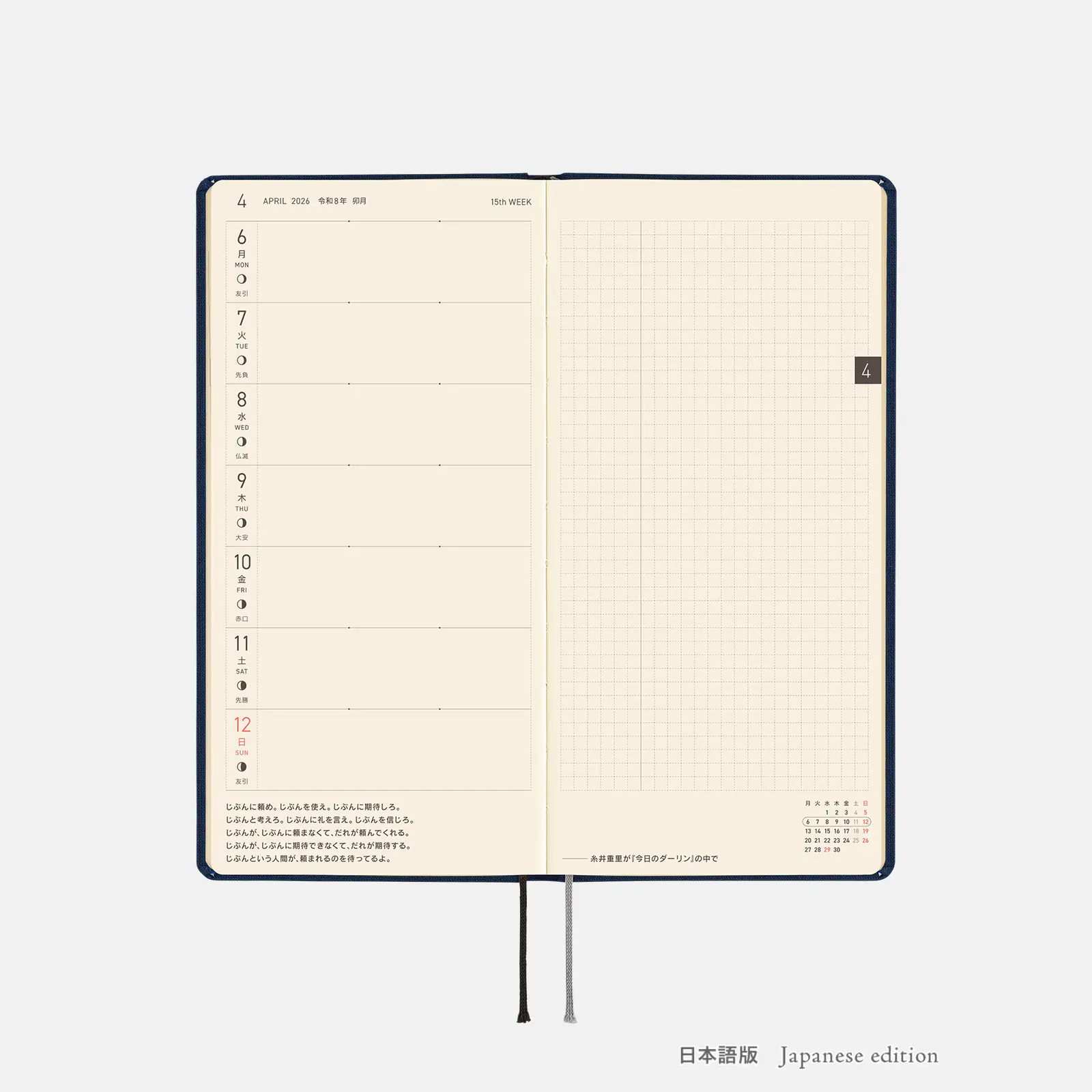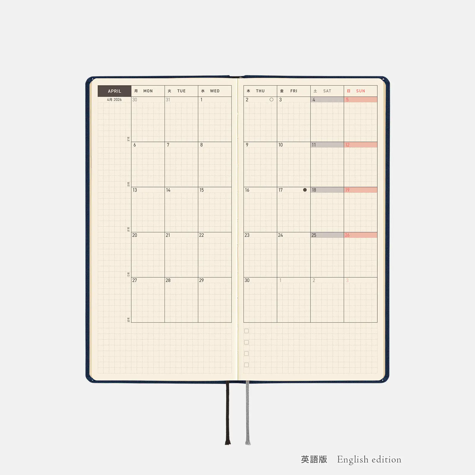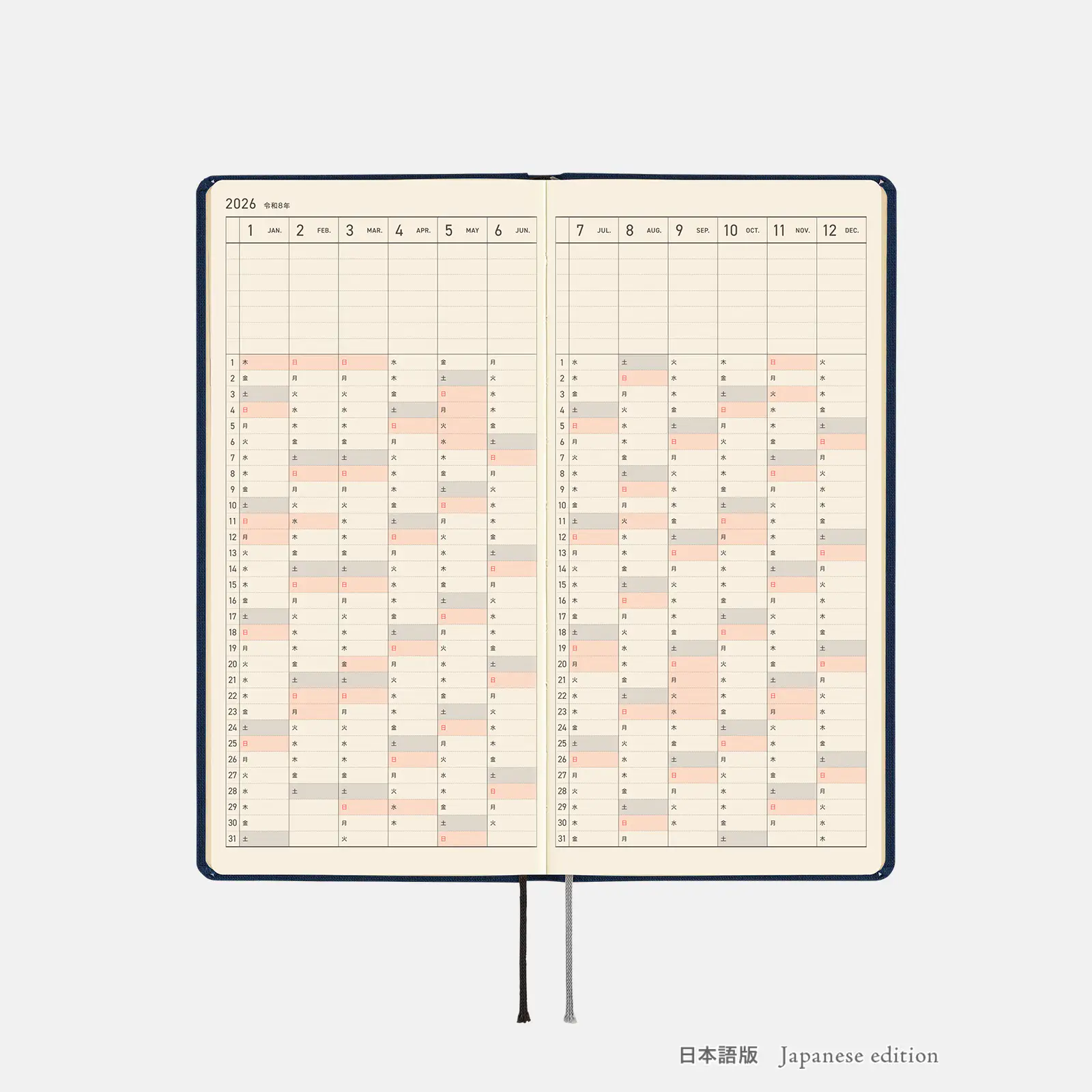 | Bonus Pages | 365 Days Check-Off Sheet / Using Things around You to Measure Size / My 100 / Memories 2026 / 12 Switches to Help You Focus / Solar Terms / Emergency Preparedness / Age Table / Conversion Chart / Getting the most of Hobonichi / Contact List / Personal Notes |