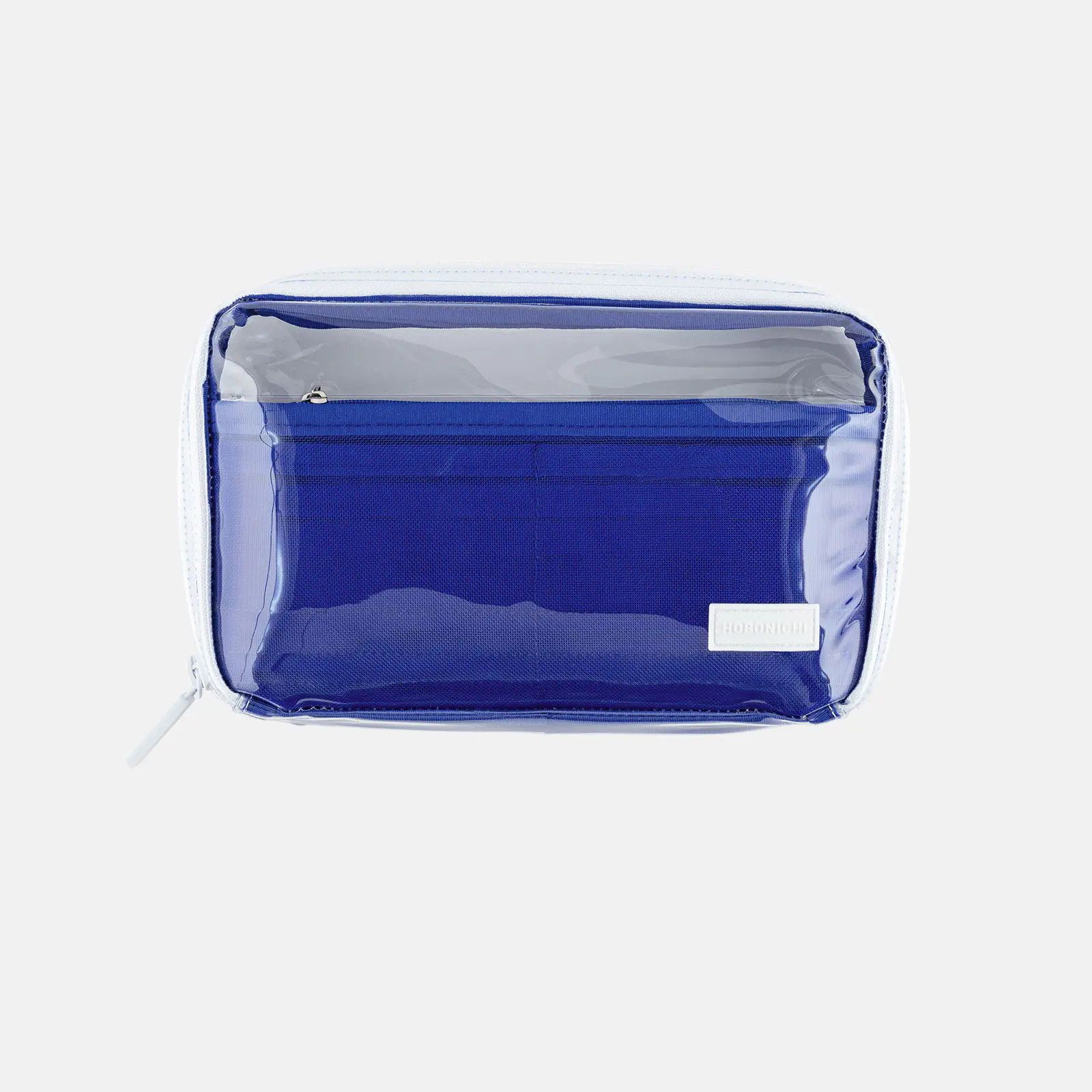 Clear Blue is made with a clear vinyl material that allows you to see the contents inside the pouch, giving it a casual and lighthearted look. It’s also stronger against water than its cloth counterparts, making it well-suited for bringing around town or taking along to play sports. The design pairs a vivid blue hue with a white zipper, giving it a refreshing look. The pouch is simple yet playful with the way its look changes depending on what you’ve stored inside. The inner pockets are made with a fine mesh for a convenient feature that also allows you to enjoy seeing what’s inside. It’s accented with a white silicon label with the Hobonichi logo.