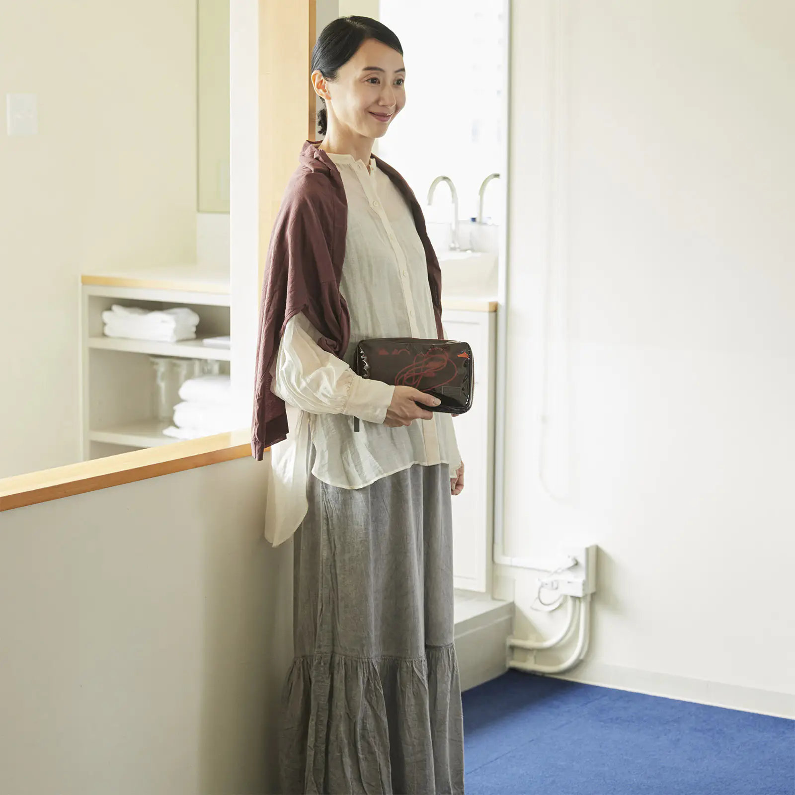 The Drawer Pouch Áne (AH-nay, “older sister” in Japanese) is the size of a wallet and opens accordion-style. The Áne works great as a wallet for your cards and bank books, but it’s also perfect for storing other smaller items, such as writing accessories, tickets, and headphones.