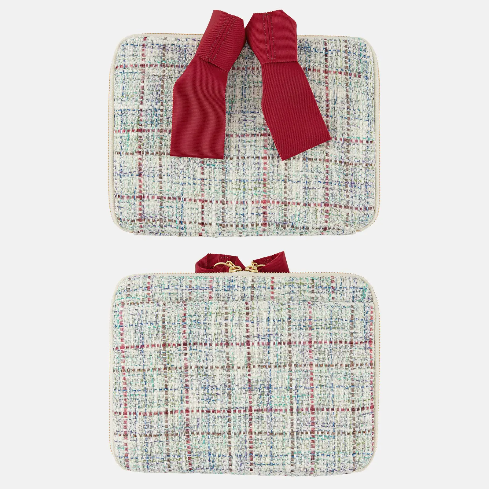 Turn your pouch into a convenient gadget case by storing your tablet, cords, chargers, and other accessories for your electronics. This provides an added bonus of cleaning up the clutter from your bag. (Pictured: Yellow)