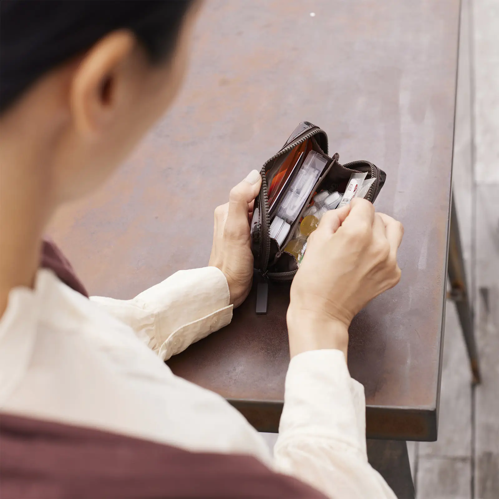 You can use the pouch for dual purposes, such as organizing makeup touch-up products on one side and gadgets on the other. It’s nice storing it all together in a way that won’t take up space in your bag.