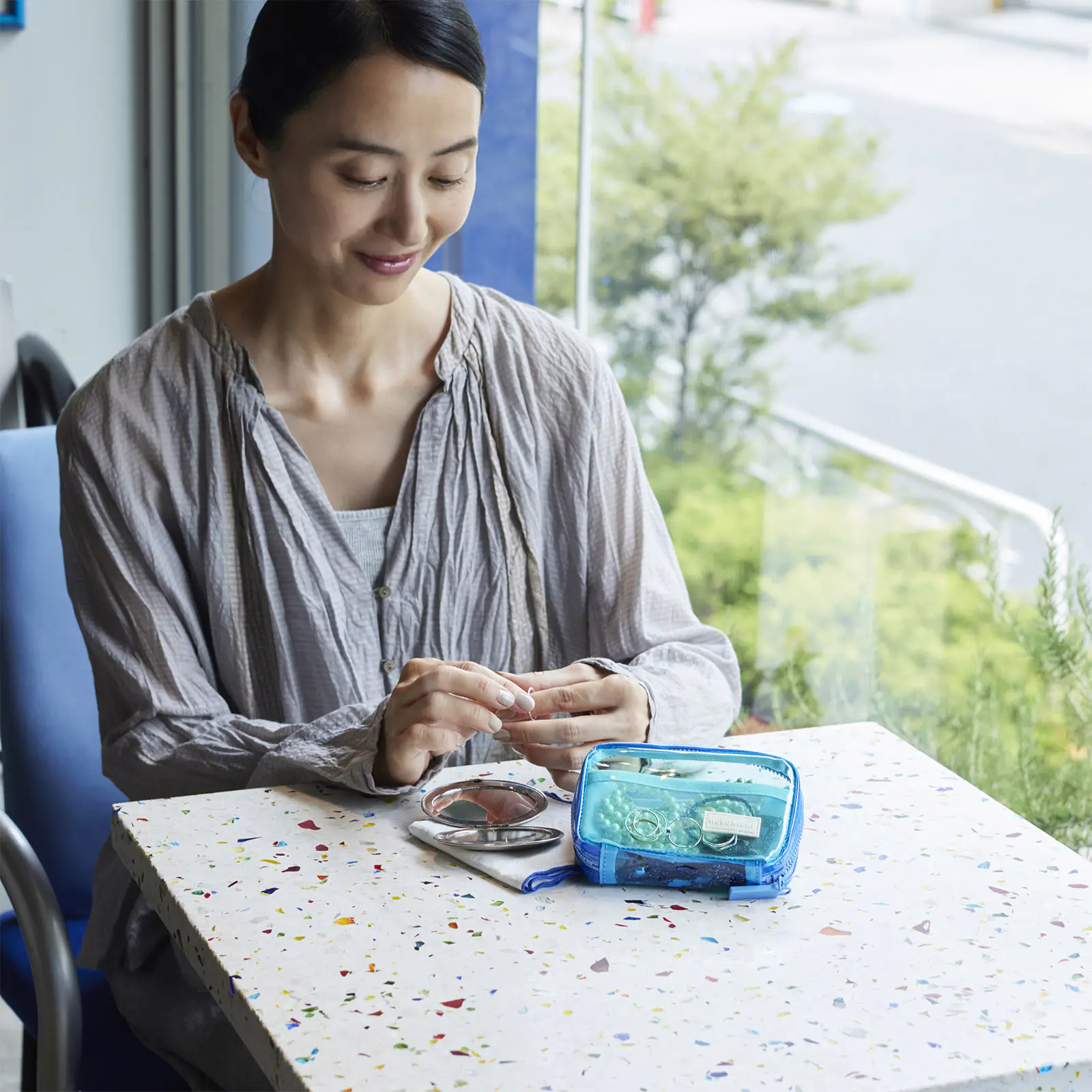 The Clear Mixed Blue is a casual and lightweight Drawer Pouch made from blue vinyl material. Compared to fabric, it’s more water-resistant, making it perfect for outings, sports, and other active situations.