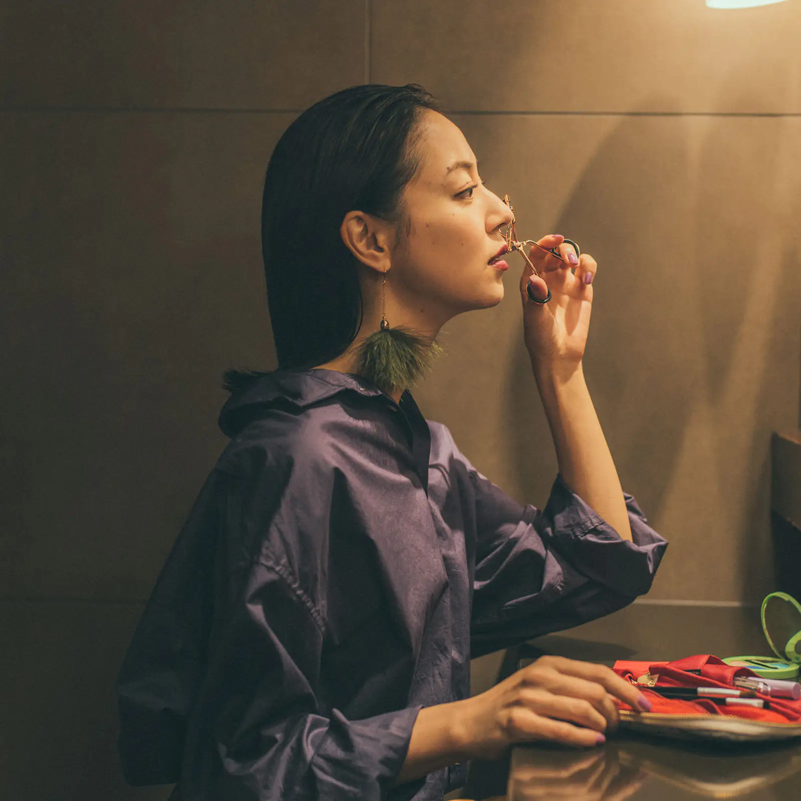 Iwate Home Spun: Lamé Tweed has a white base overlaid with cool-colored thread and accented with two colors of lamé yarn. The name Home Spun refers to the tweed fabric’s hand-spun and hand-woven feel. Starting with the dyeing of the yarn, the textile is made entirely in a small factory in Hanamaki City, Iwate Prefecture.
