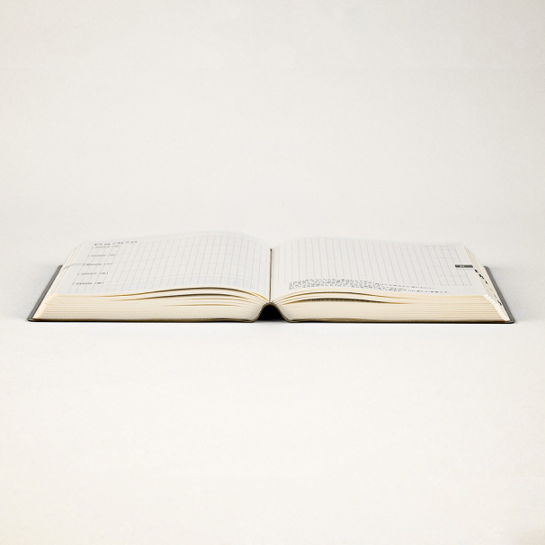 The book has some depth at 25mm thick, yet opens flat 180 degrees. This removes any stress about needing to push the pages down to keep the book open, and makes it easy to write in.