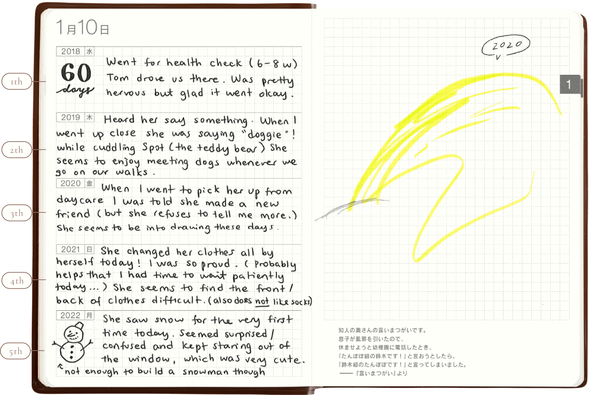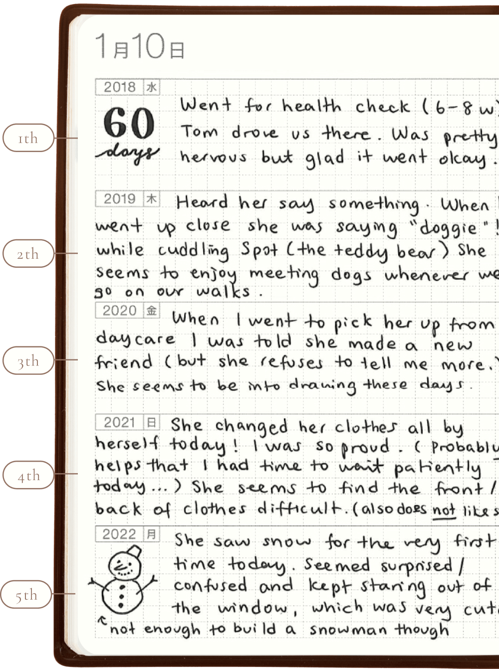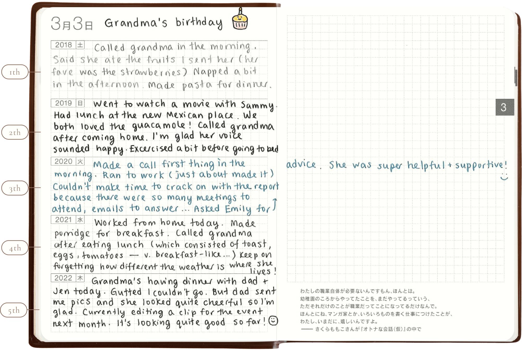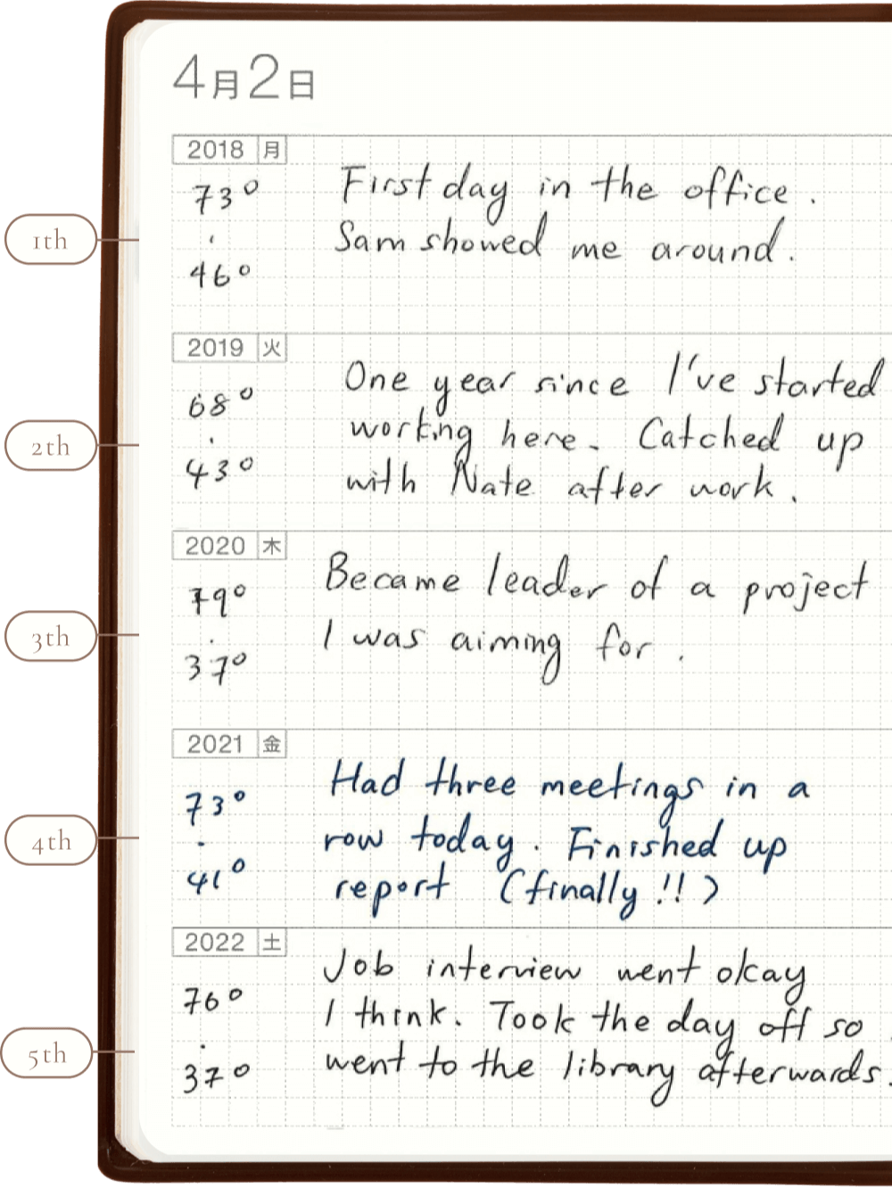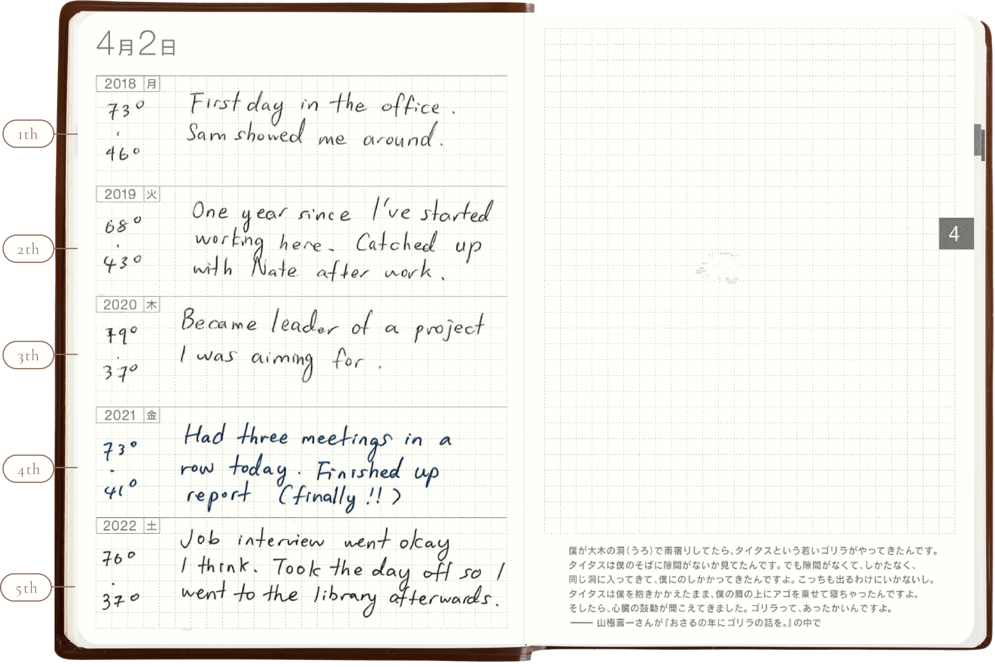 Hobonichi Techo users and Hobonichi staff share their anecdotes about 5-year spans