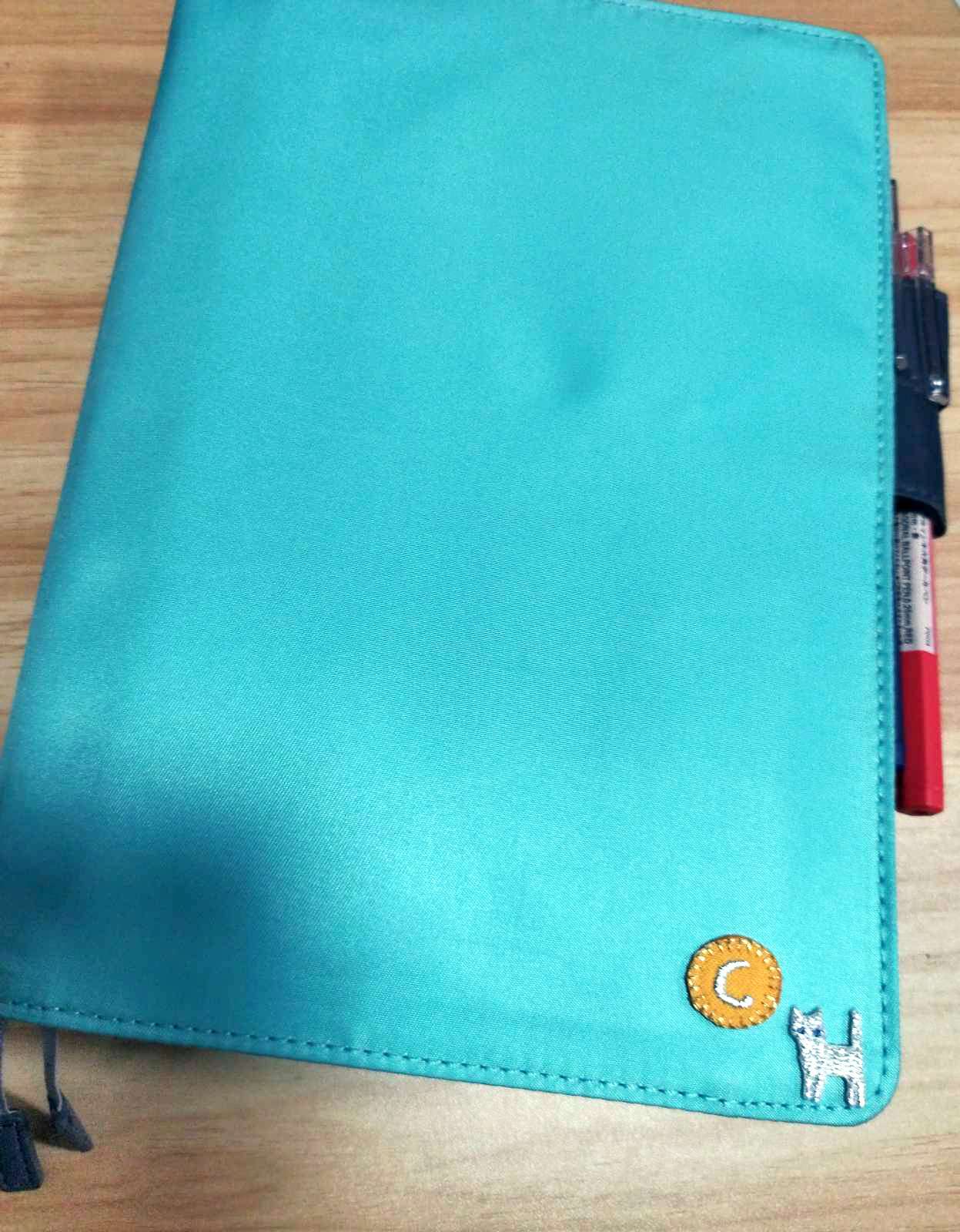 - Mikeneko bought embroidered patches of an initial and a cat made by AIUEO.They turned out very nice when ironed onto the A5 size techo cover (from the Colors series).They give an accent and make a cute cover!