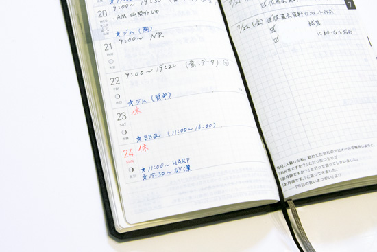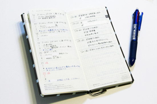 - Indeed. Around two years ago, I worked a lot on Saturdays and Sundays — so I started making a note of which days I had off, along with my working hours. I also need to report the reason whenever I work overtime, so I make rough notations to this effect in my techo as well.