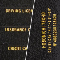 The Hobonichi Techo 2017 series welcomes a black leather cover designed by art director Naomi Hirabayashi. The leather is fine Italian pig leather, which does not easily show scratches and marks. Beautiful in appearance, it exudes the aura of an antique notebook. The outside has been left free of any decorations, but each of the internal pockets is marked with gold letters to make it easy to remember what goes into which pocket. Featuring a clean design and user-friendly design, this cover gives off a natural charm.