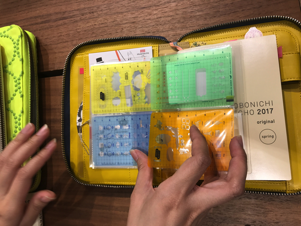 This stationery fan had a complete set of Hobonichi Stencils and used the Zippers cover as a pouch to carry it all.