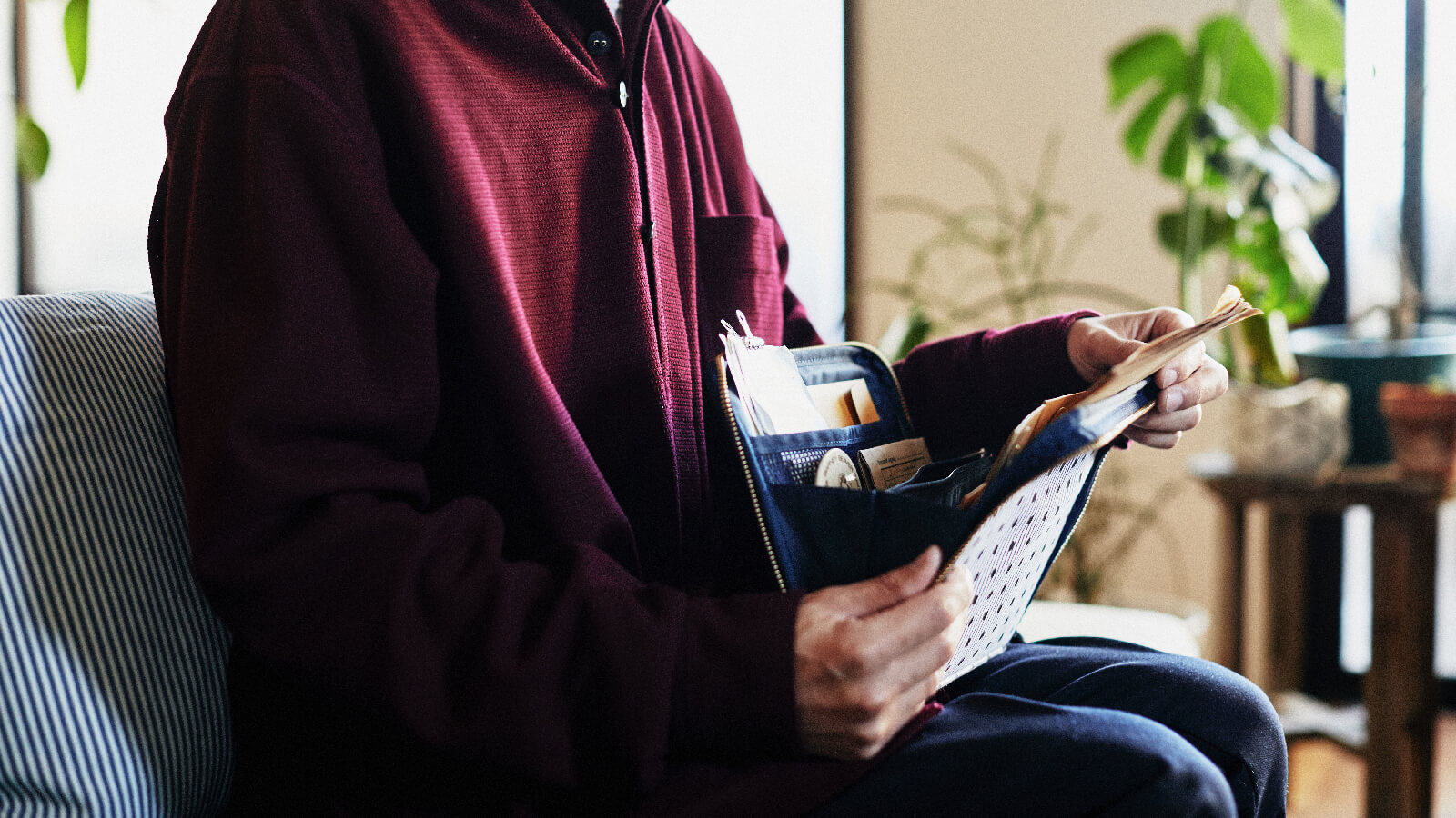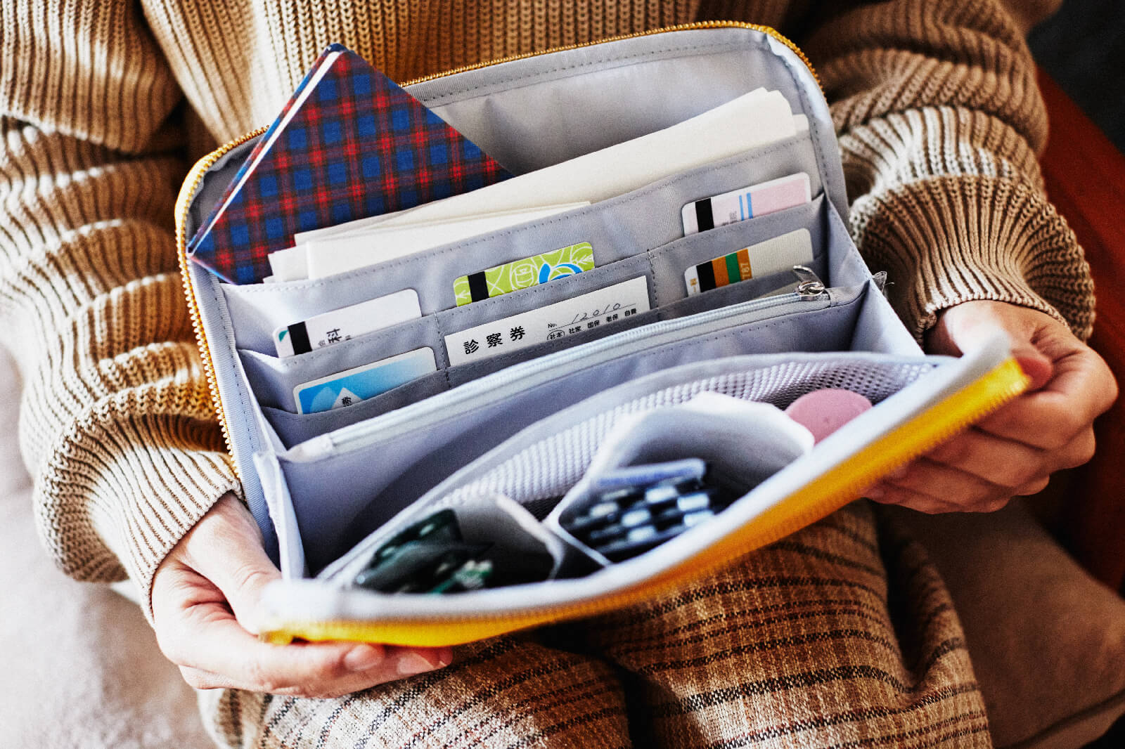 The pouch can hold anything you use on a daily basis — from stationery such as writing utensils, stickers, and scissors to cards, documents, and checkbooks. The compartments allow users to organize items into several areas based on themes. A user can store receipts, checkbooks, point cards, and coupons in one spot for “shopping,” and medical records and prescription documentation in another for “medical information.”