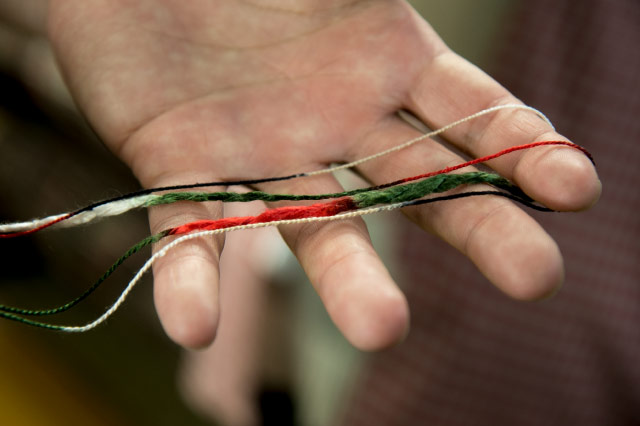 The progress is constantly monitered for loose threads, which are adjusted on the spot.
