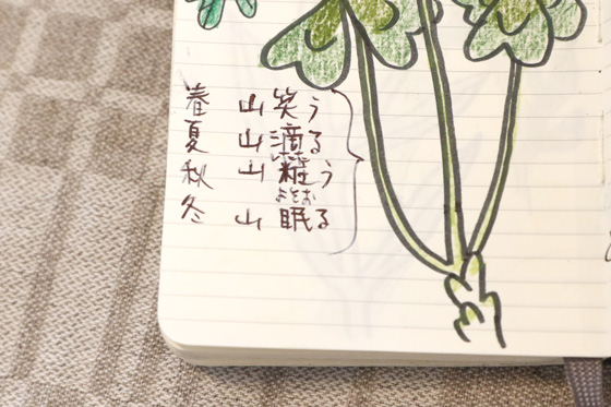 - It’s a little boring, but it’s seasonal terms that are used to portray mountains in poetry. In spring, mountains “smile,” in summer, they “moisten,” in fall, they “dress up,” and in winter, they “sleep.” I think I learned about it in high school, but I forgot the summer term, so I made a note to remind myself. And that’s about it for my techo.