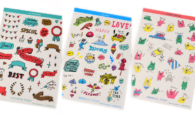 Illustrations by creative design group Bob Foundation are popular for their exciting blends of words with pictures. The A6 and A5 size Cover on Covers and the Weeks Clear Cover are each illustrated with city themes, namely Tokyo, Stockholm, and London. The fun illustrations feature famous icons of the cities, and are drawn in white lines with a single color making up backdrops of waves, raindrops, or other patterns. In addition, the Hobonichi Mini Letter Sticky Notes “Circus” can be used to pass messages to others or paste in your techo pages as an index. Finally, the Hobonichi Stickers are sets of cute pictures to supplement your pages with how you’re feeling that day.