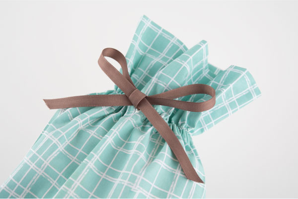 We’ve created this cotton cloth gift bag to support the sentiment behind gifting the Drawer Pouch to someone special. The refreshing design features a white and light blue checkered design, making it perfect for any age or gender.