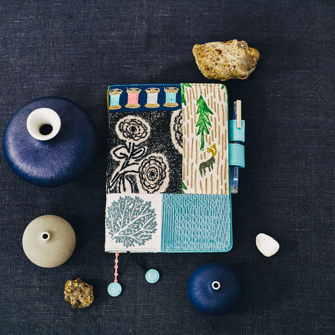 The annual covers include pieces from minä perhonen’s precious textile archive, chosen and coordinated together specially for the Hobonichi Techo. The patchwork design is carefully balanced, taking into consideration the color, pattern, and texture of each piece. This allows users to experience the luxury of having all these amazing textiles at once.
