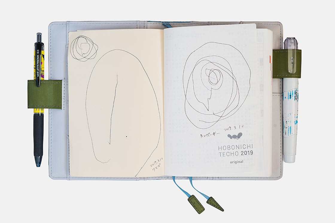 OkiExactly. I realized that her drawings changed as she continues to draw in her techo. I didn’t know how it was going to go in the first year, but gradually, seeing how she drew circles more neatly than before, I realized her growth. The drawing of the bread you saw just now has changed this much.