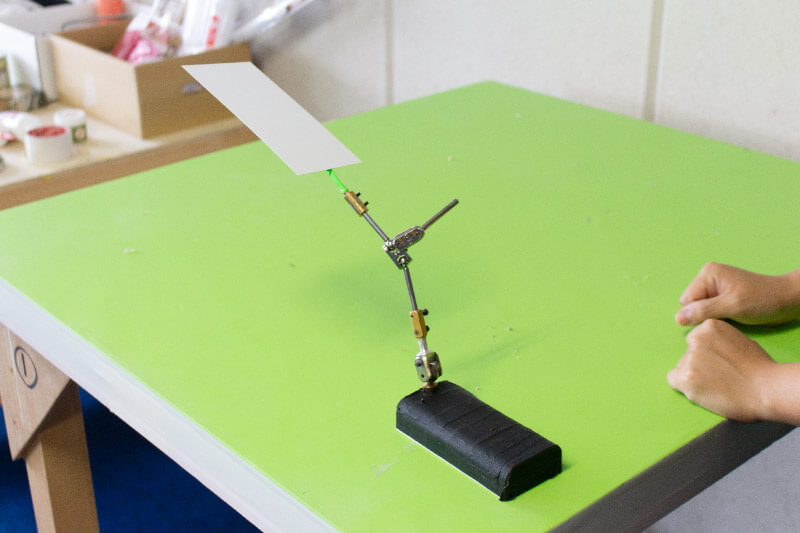 A desk in the art room. When creation animations, the prior preparations of creating and setting take more time than the actual filming itself.