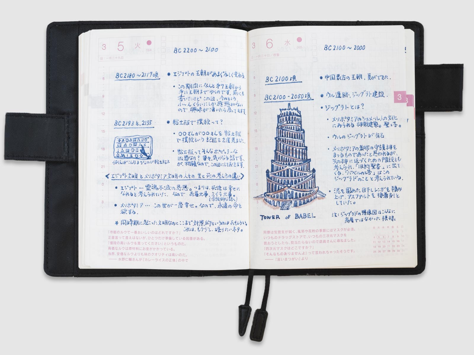 We received another email from Tamaki this year that said, “I wrote in that techo—the one you featured—all the way up to New Year’s Eve, and I must say, it has really turned into something amazing.” We asked Tamaki to give us an update on the techo that crammed 4.6 billion years of history into a single book.