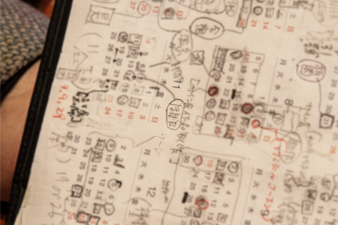 I first fill in dates of my exhibition. Days I teach at university, teach lessons, give talks… those are mainly what my schedules consist of. I occasionally paste things in, but the rest is blank. The wide spaces are useful, but the most important part is this calendar.
