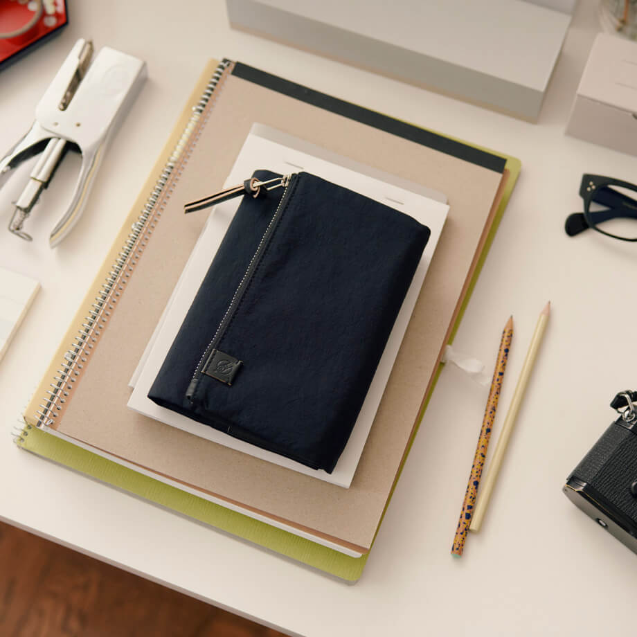 “tragen” is a chic techo cover that carries stationery and other essential items.