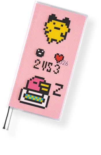 This Hobonichi Techo cover is dotted with lively Tamagotchis, and the Hobonichi Techo Weeks features cute Tamagotchis with unique poses. The see-through stickers included as a bonus with both are also adorable!
