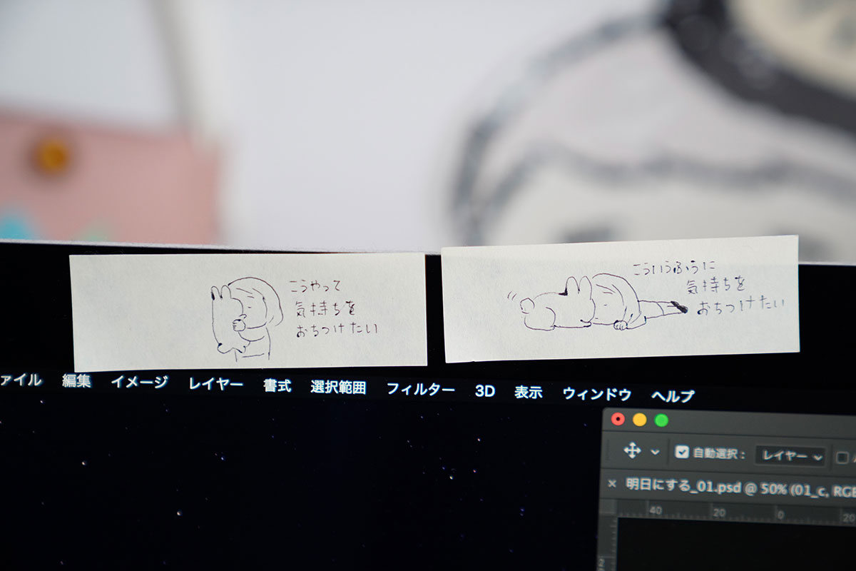The manga she drew as an assignment for the Hobonichi Learning Space was the beginning of her job involved in drawing. She currently has a serialized manga Oni no Ko on the website Cakes. Her publications include To Be Kind, To Be Strong, To Be Interesting (published by Hobonichi), and her first ever picture book that published in 2020 A Sky-Blue Letter (published by Iwasaki Shoten).