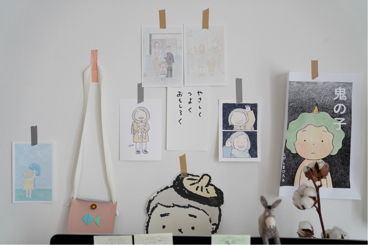 The manga she drew as an assignment for the Hobonichi Learning Space was the beginning of her job involved in drawing. She currently has a serialized manga Oni no Ko on the website Cakes. Her publications include To Be Kind, To Be Strong, To Be Interesting (published by Hobonichi), and her first ever picture book that published in 2020 A Sky-Blue Letter (published by Iwasaki Shoten).