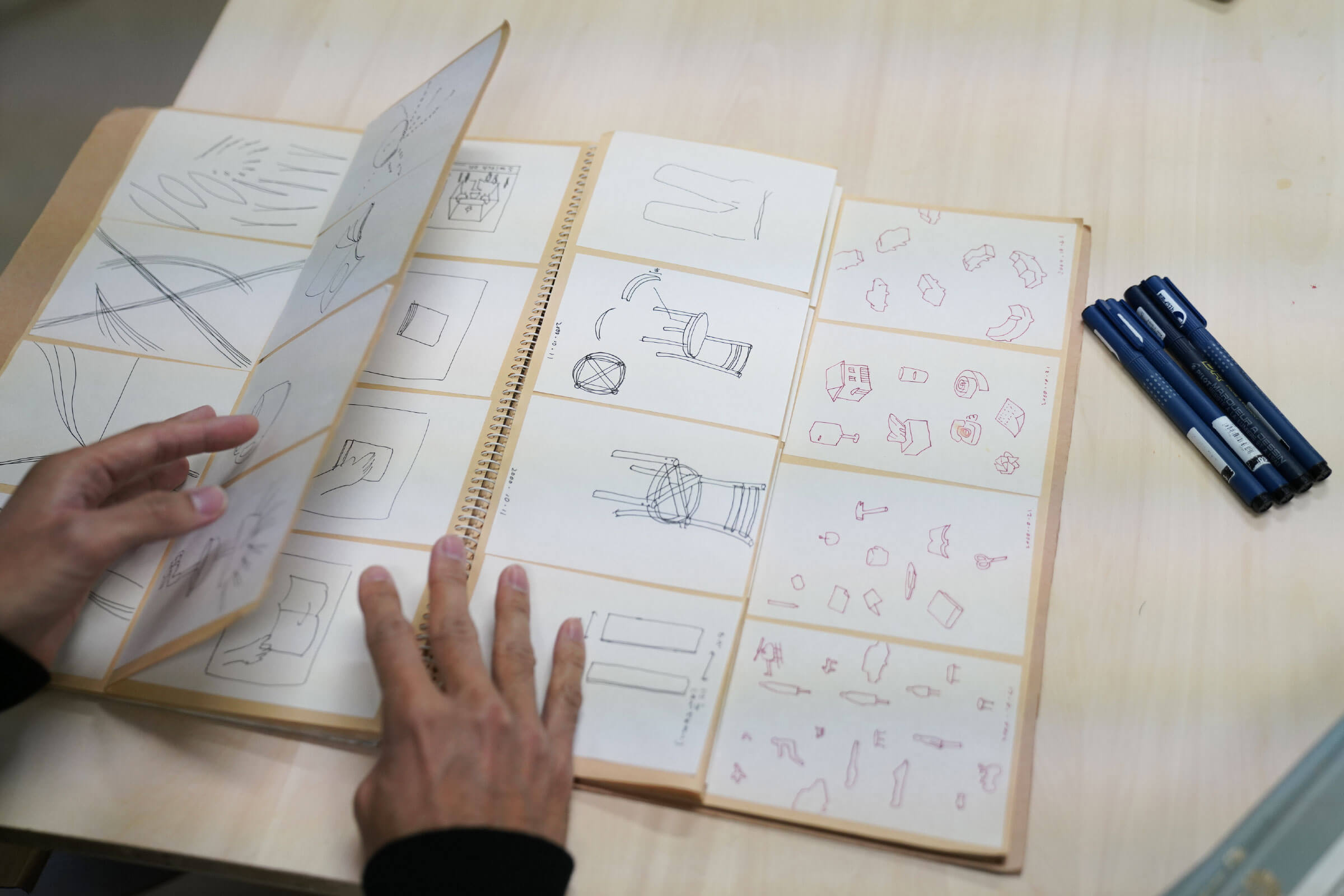 Occasionally I’ll talk with my assistant about one of my sketches, and they’ll ask what something is. Sometimes I’ll give an off-the-cuff answer that ends up being interesting to me. It’s important for me to be able to feel like I wouldn’t want anyone poking through my notebooks without asking—that way, when I actually show part of one to somebody, it allows something I wasn’t aware of to emerge from its hiding place deep within me.