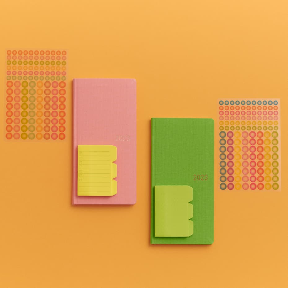 This brightly colored Weeks can make you feel gorgeous, and it’s even better when paired with matching accessories. The Sticky Tab allows you to add a tabbed note wherever you want, and the cute See-Through Dot Stickers can fill your pages with color.