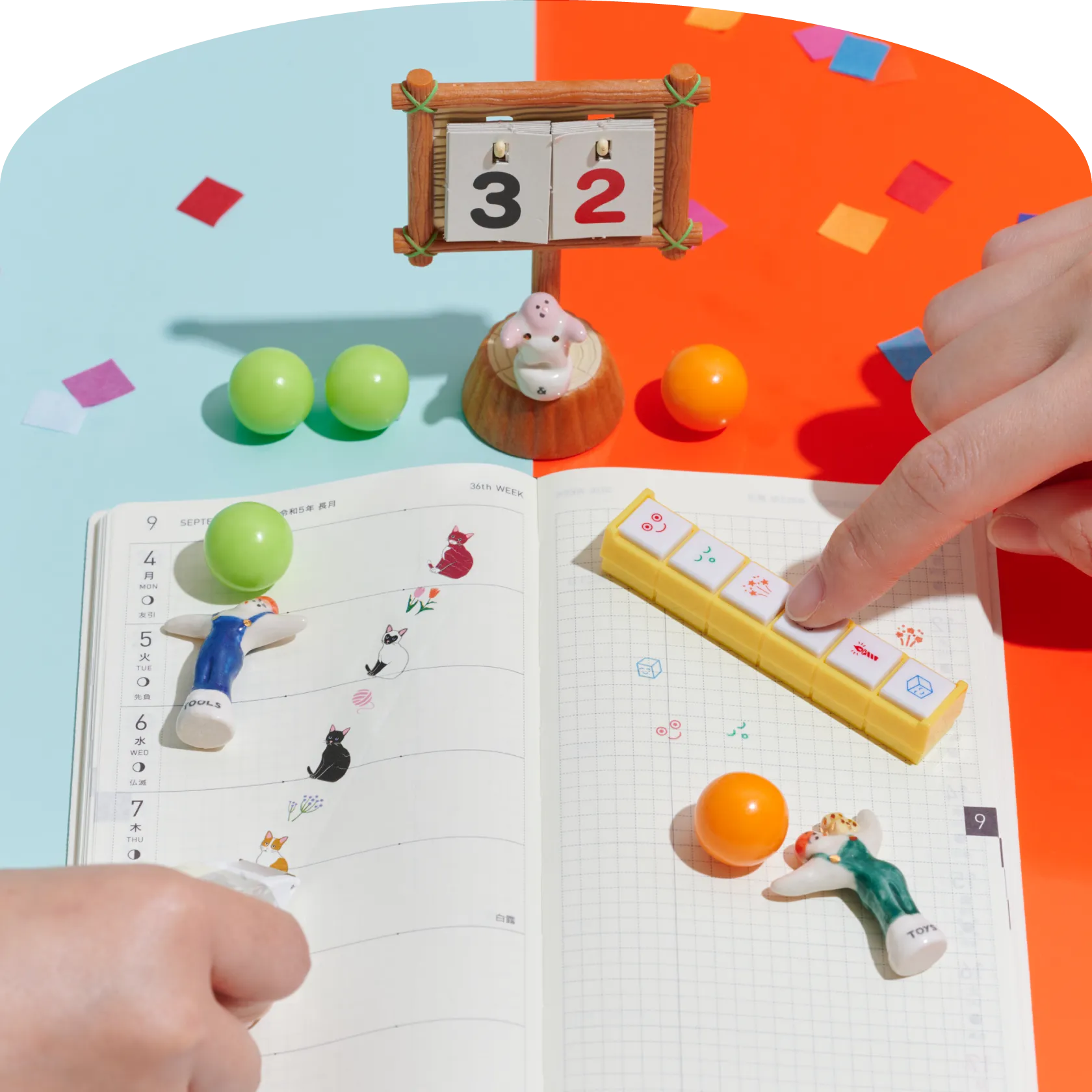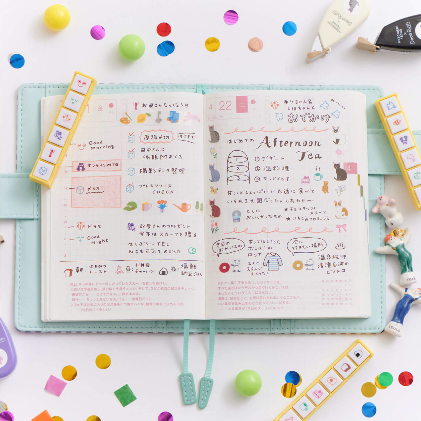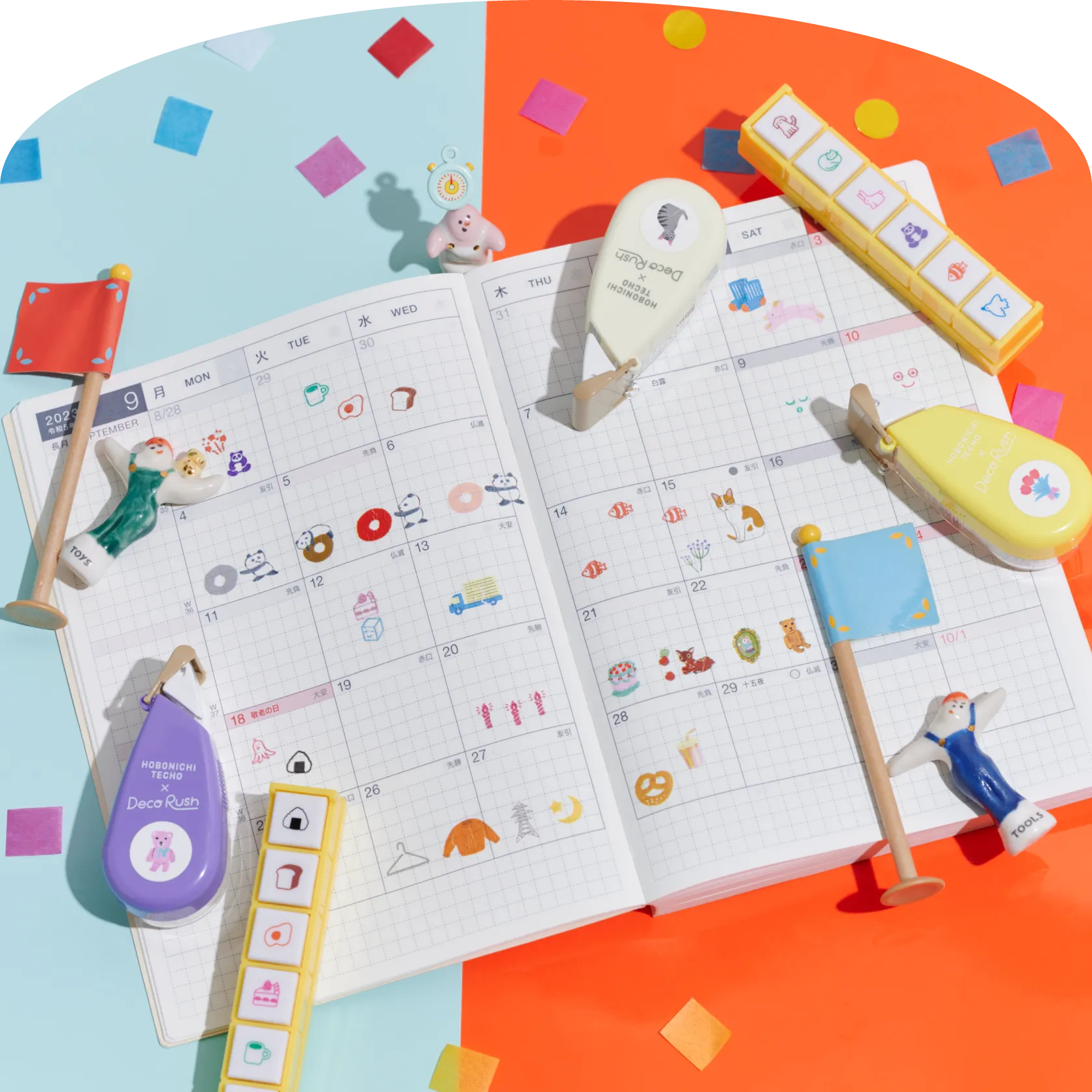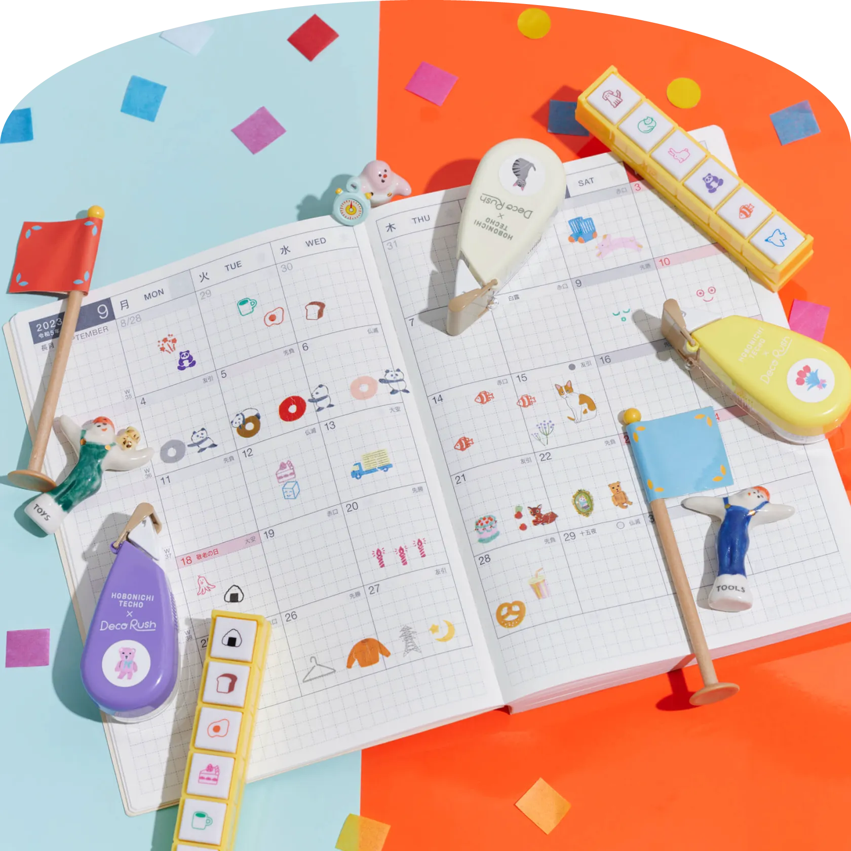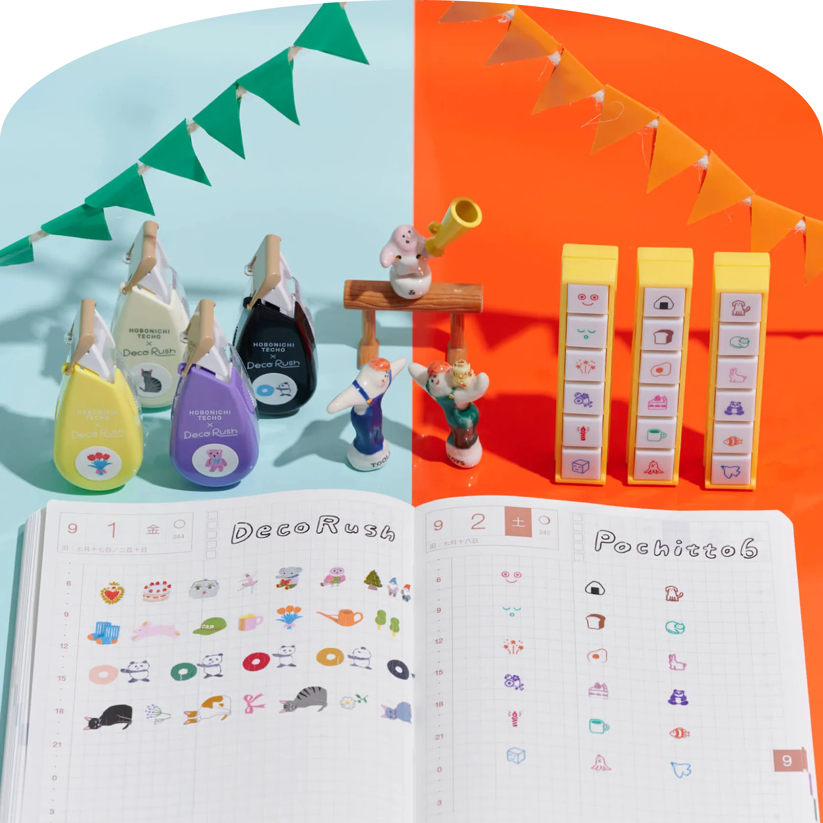 Deco Rush and Pochitto6 are stationeries that make your techo fun and colorful, and using them together would be even more fun! Use them as lines to divide the pages or as highlighters, and you will see what a great match they are.