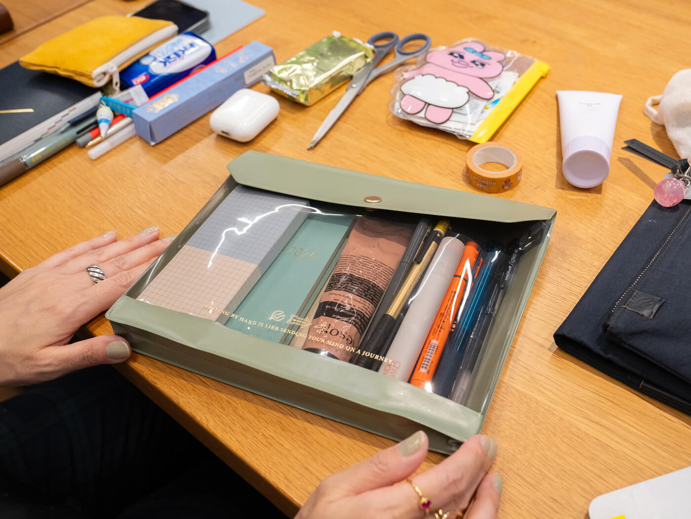 For the Hobonichi Techo 2025 lineup, we’ve created new pouches and cases designed to carry the HON. We wanted to see how much it could fit, so the techo team all got together and had fun putting it to the test. We had a blast coming up with random ideas, and were surprised at how much could fit!