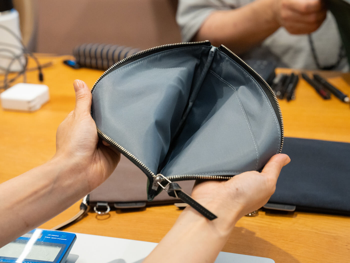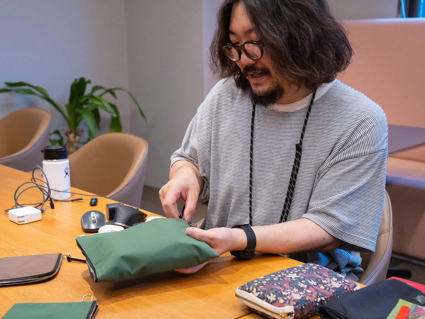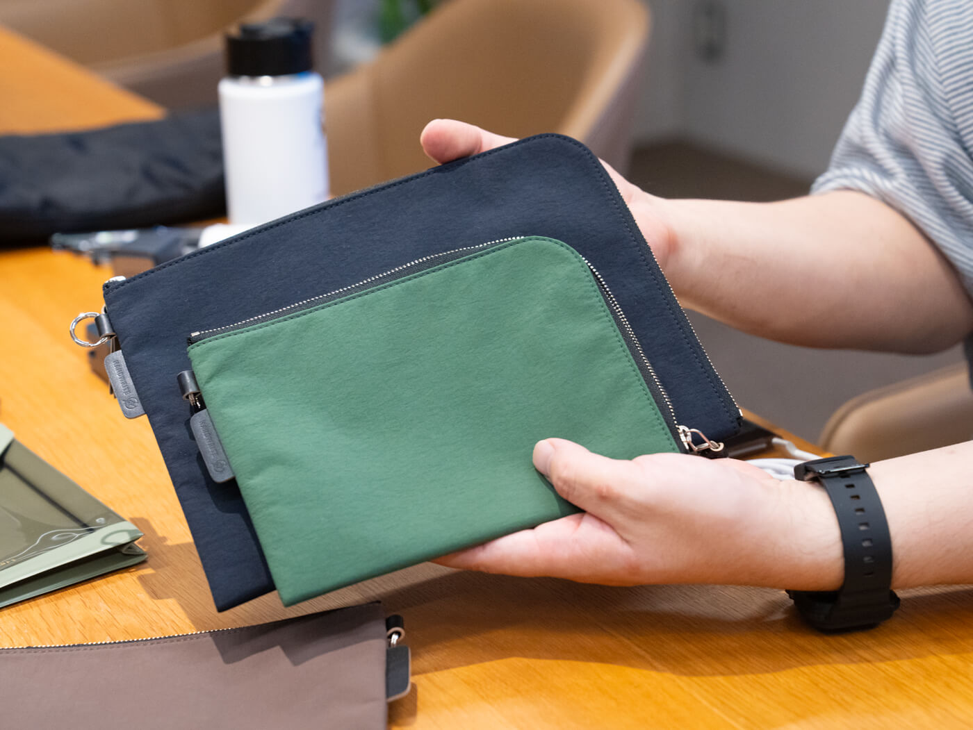 The Alettone Document Case and Tragen Flat Pouch inspired us to come up with many ideas. They made us want to try more and more. (Laughs)
