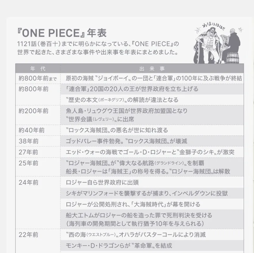 such as a chronology that gives you a bird’s-eye view of the story and Wanted posters that you can actually write on. There’s also a collaboration project with the MCs of the official One Piece YouTube channel’s show, "Nakama ga Iru yo Tube!!!!"