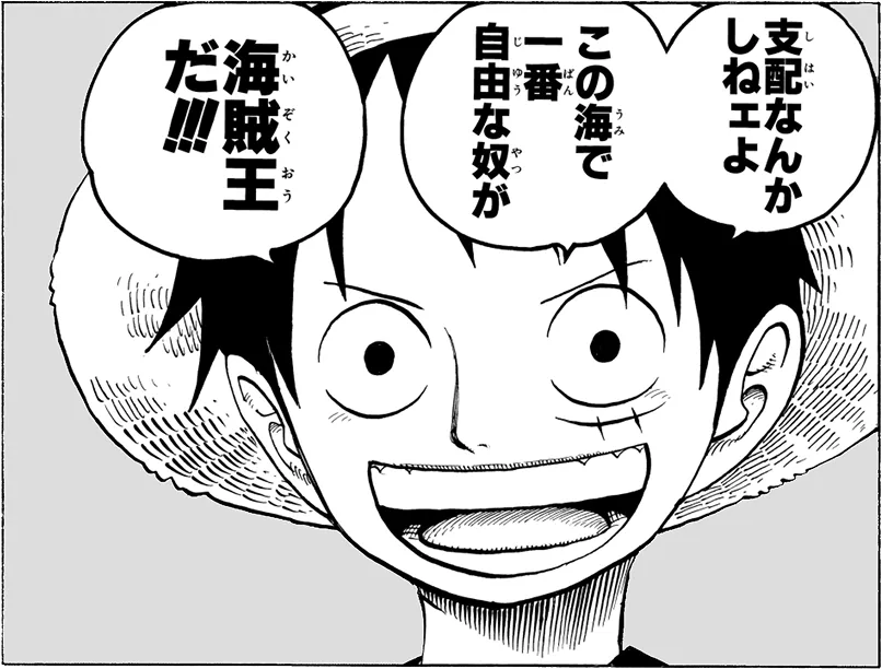 おれはいつかこの一味にも負けない仲間をあつめて!!世界一の財宝みつけて!!!海賊王になってやる!!!モンキー・D・ルフィ/ 巻一 第1話 Romance Dawnー冒険の夜明けー