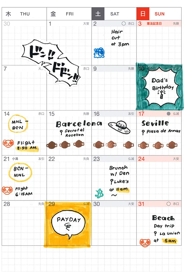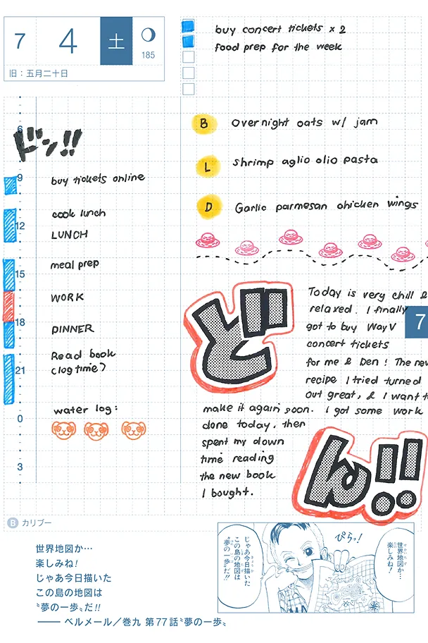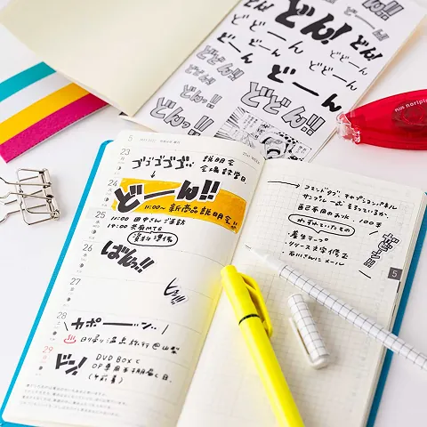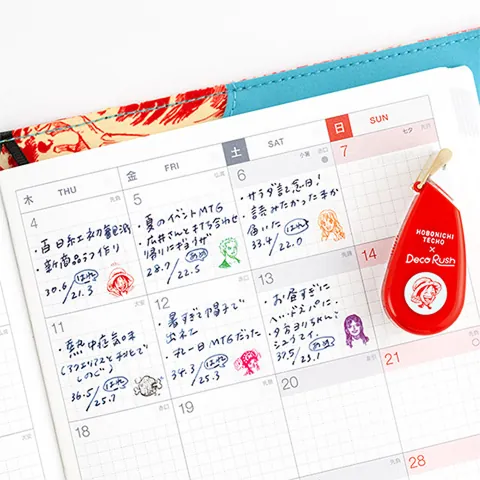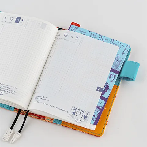 You can use the wide space for your daily schedule, of course, but also for recording the day’s events and feelings, drawing pictures, pasting tickets, and many other uses.