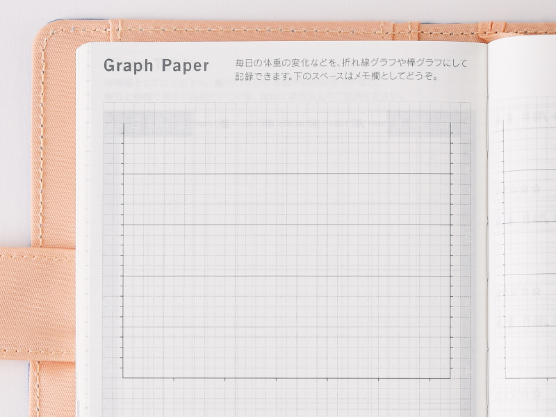 日々の体重の変化や目標に向けての記録などを残すのに便利なグラフ用紙です。グラフの横軸は31目盛りで、1ヵ月の記録にも便利です。デザインを見直し、2018年版ではグラフの下に広めのメモスペースをとるようにしました。