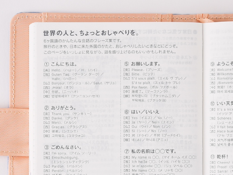日本に来た外国のかたと出会ったときや旅行のときなどに、場をすこし盛り上げてくれる、6ヶ国語のかんたんな会話のフレーズ集です。