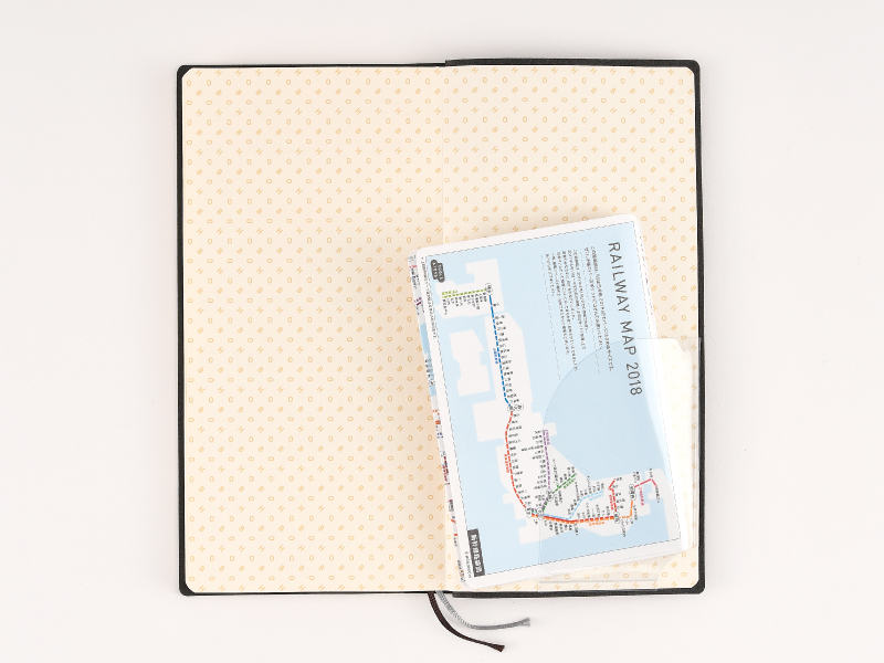 メモやシールなどを挟んでおくのに便利なクリアポケットがついています。裏面がシールになっていますので、裏表紙をめくった場所などに貼ってお使いください。