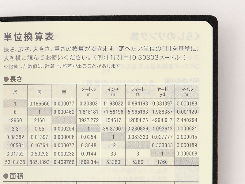 長さ、広さ、大きさ、重さの単位を別の単位に換算したいときに役立つ一覧表です。